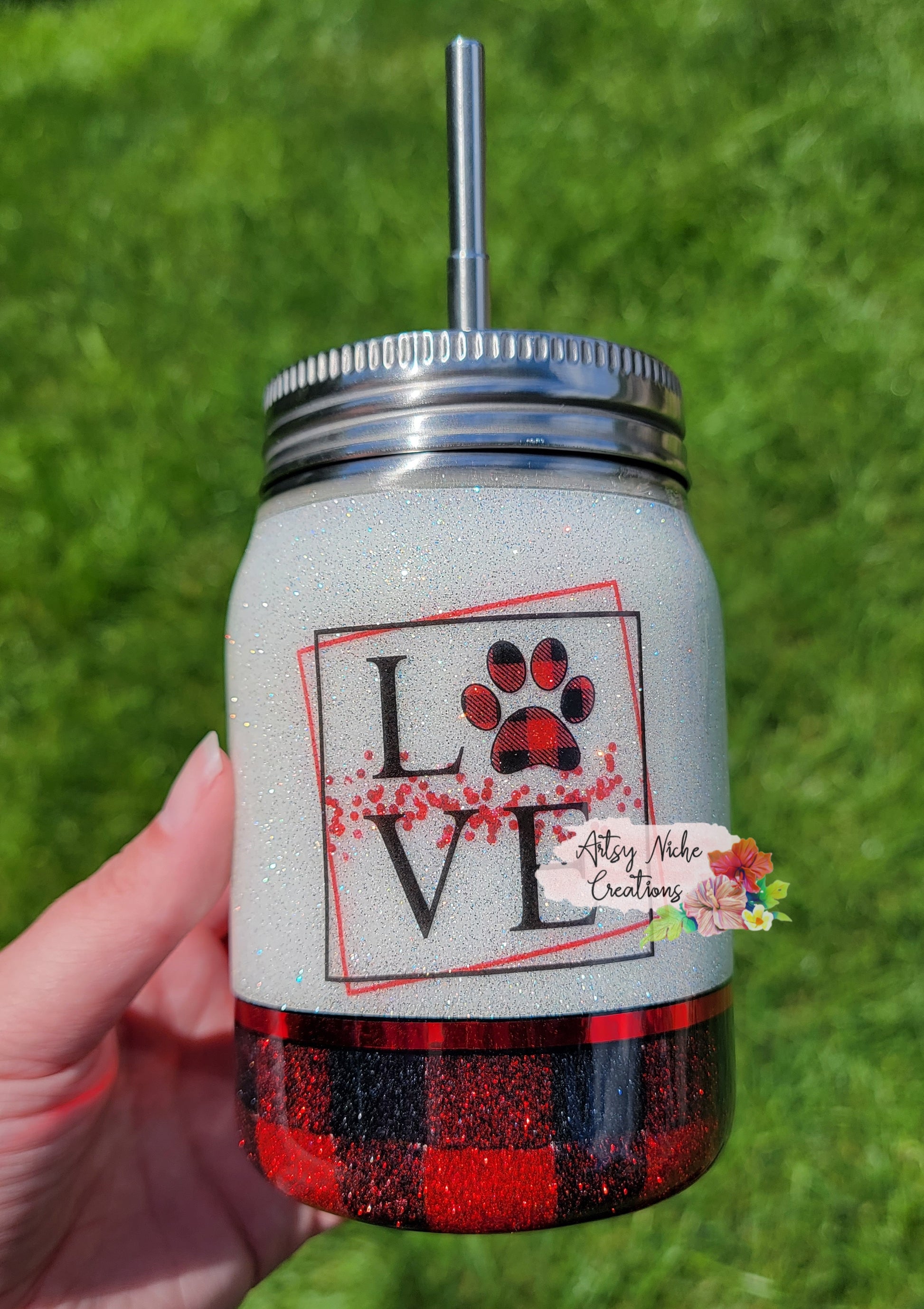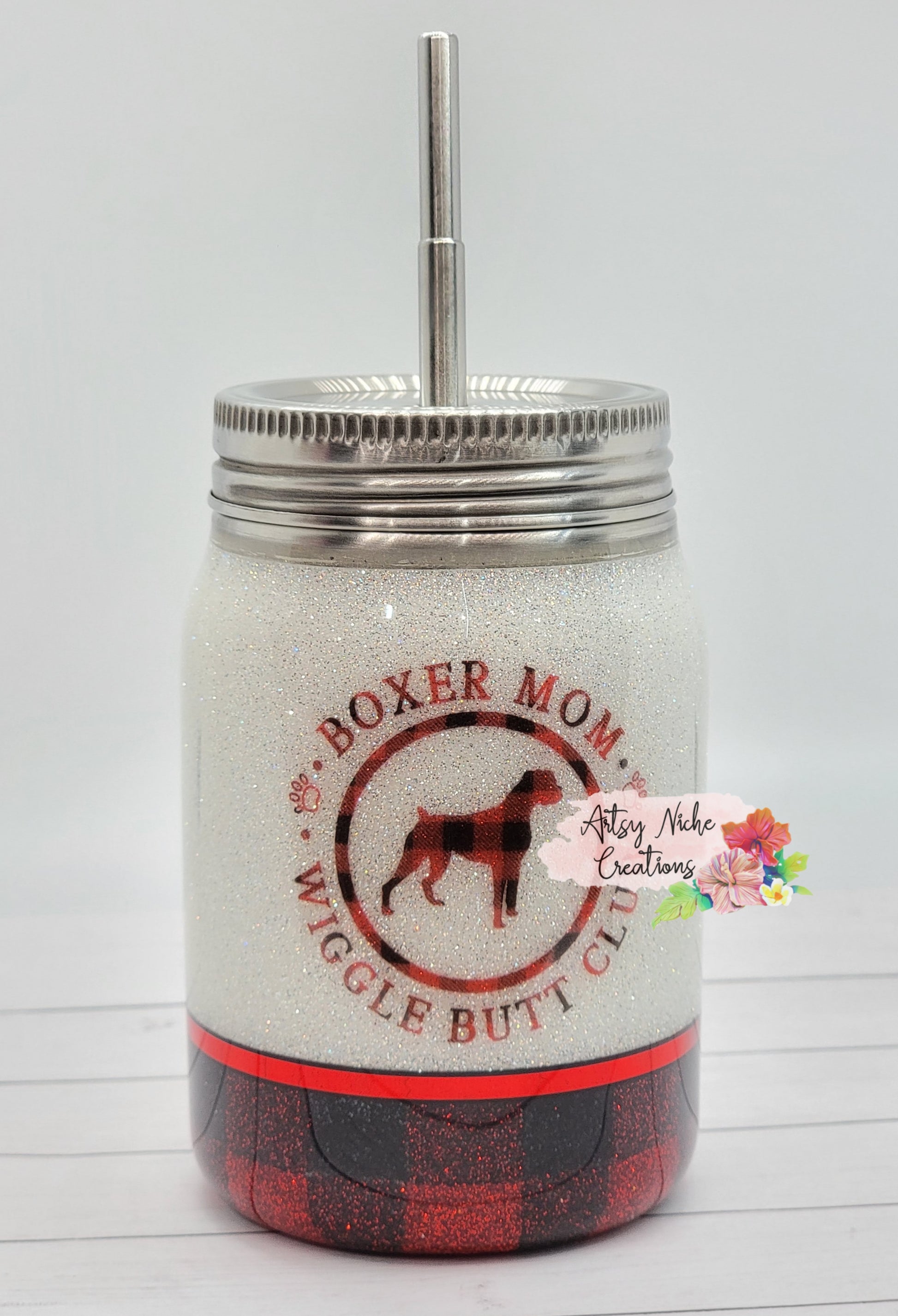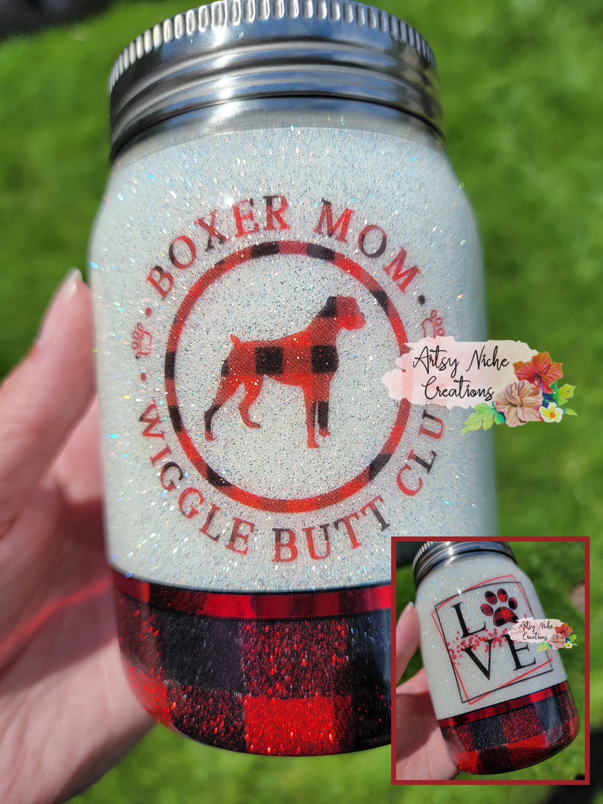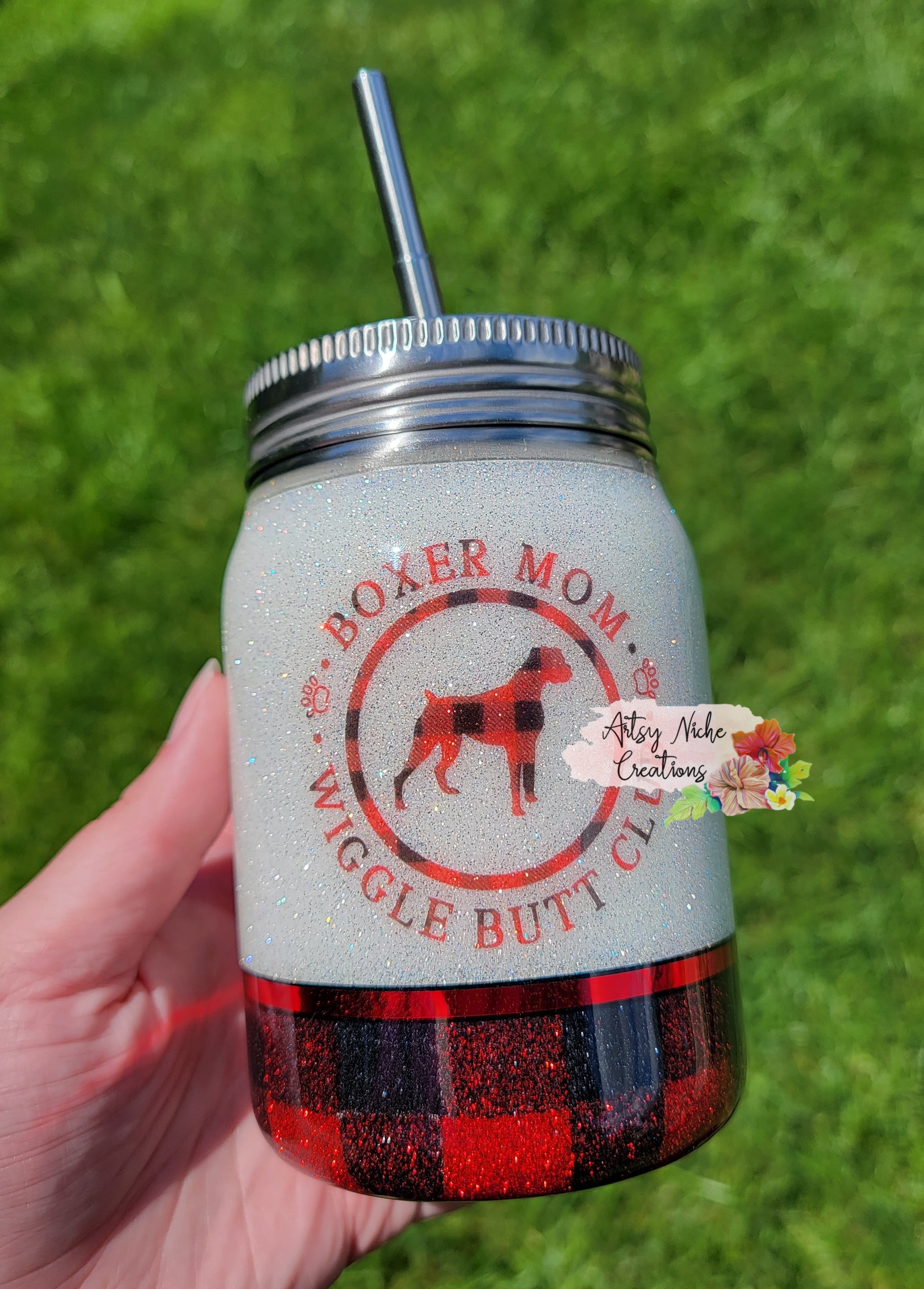 12 oz Love & Boxer Mom Wiggle Butt Club Epoxy Mason Jar Tumbler