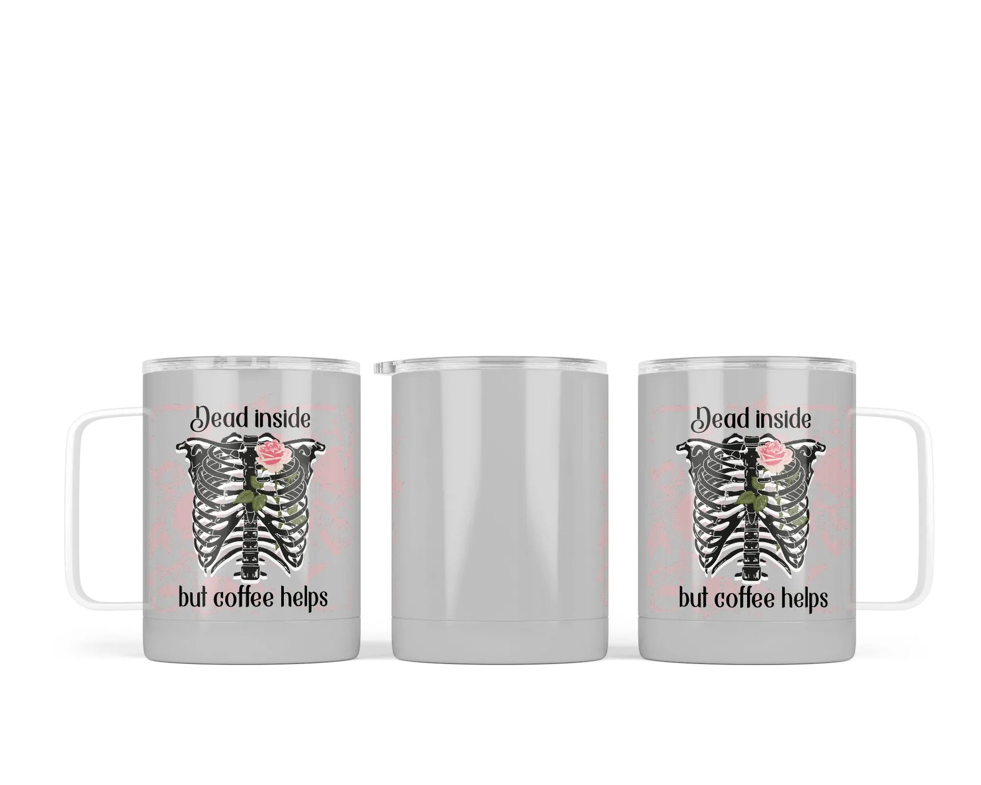 Make sure no one messes with your morning coffee with this 14 oz Dead Inside But Coffee Helps Sublimation Coffee Mug! Made with stainless steel, it's insulated to keep your coffee hot (or cold) for hours. It'll make sure, even those days when you want to stay in bed, you could use a little pick-me-up! Plus, with its lid, you can take your coffee with you on the go. So, don't worry if you're "dead inside" - coffee's got your back!
