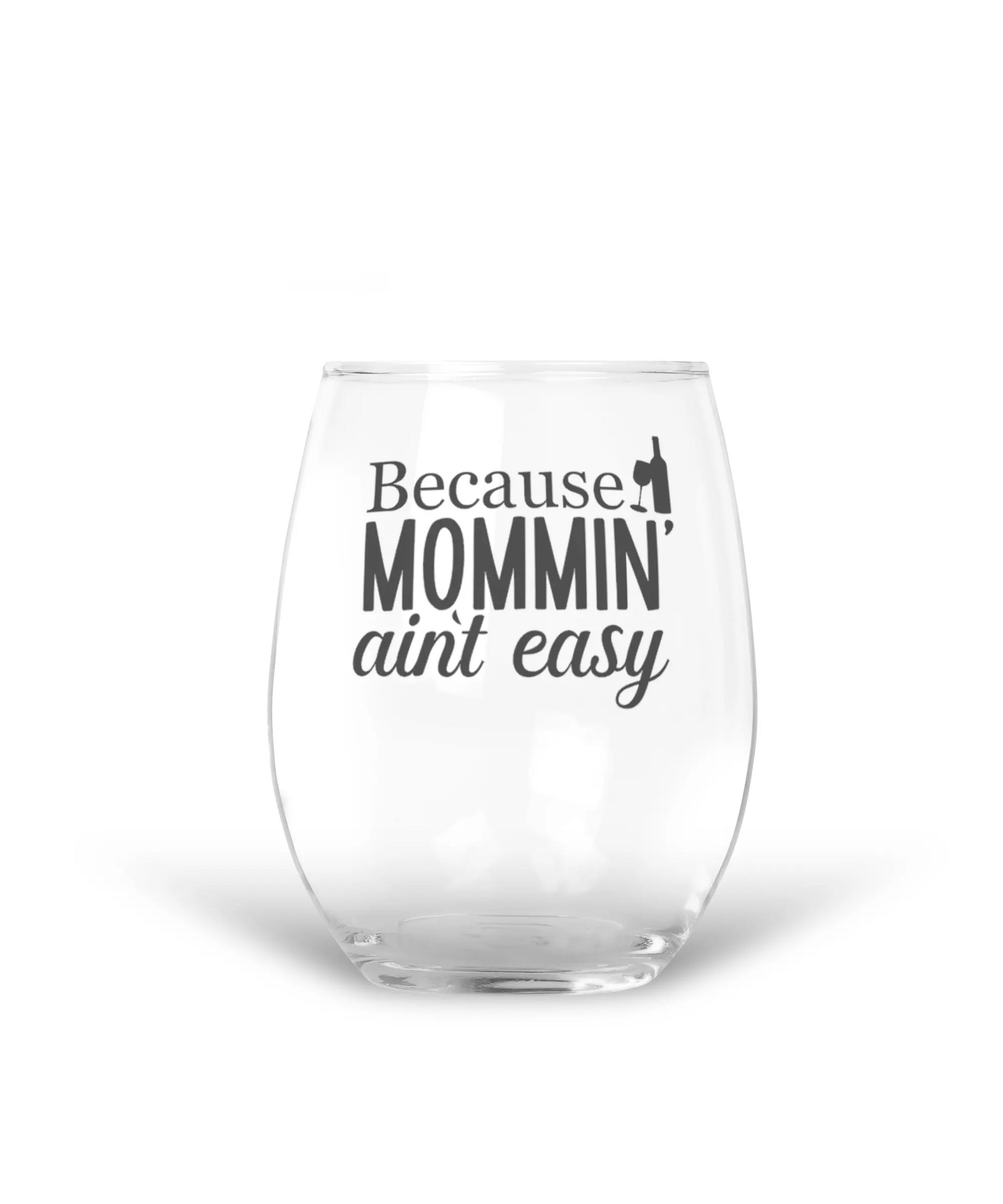 15 oz Etched Wine Glass Because Mommin' Ain't Easy