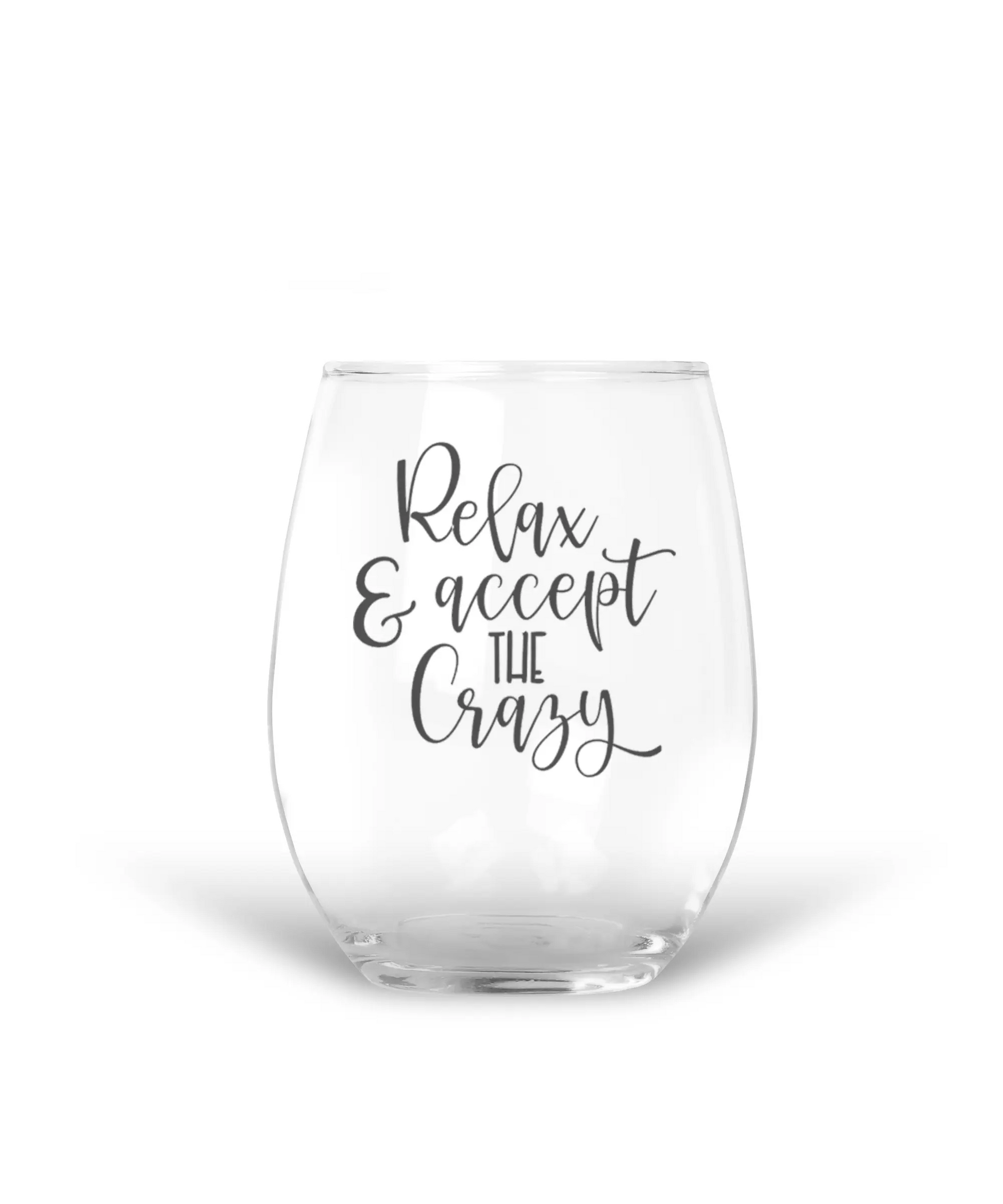 15 oz Etched Wine Glass Relax & Accept The Crazy