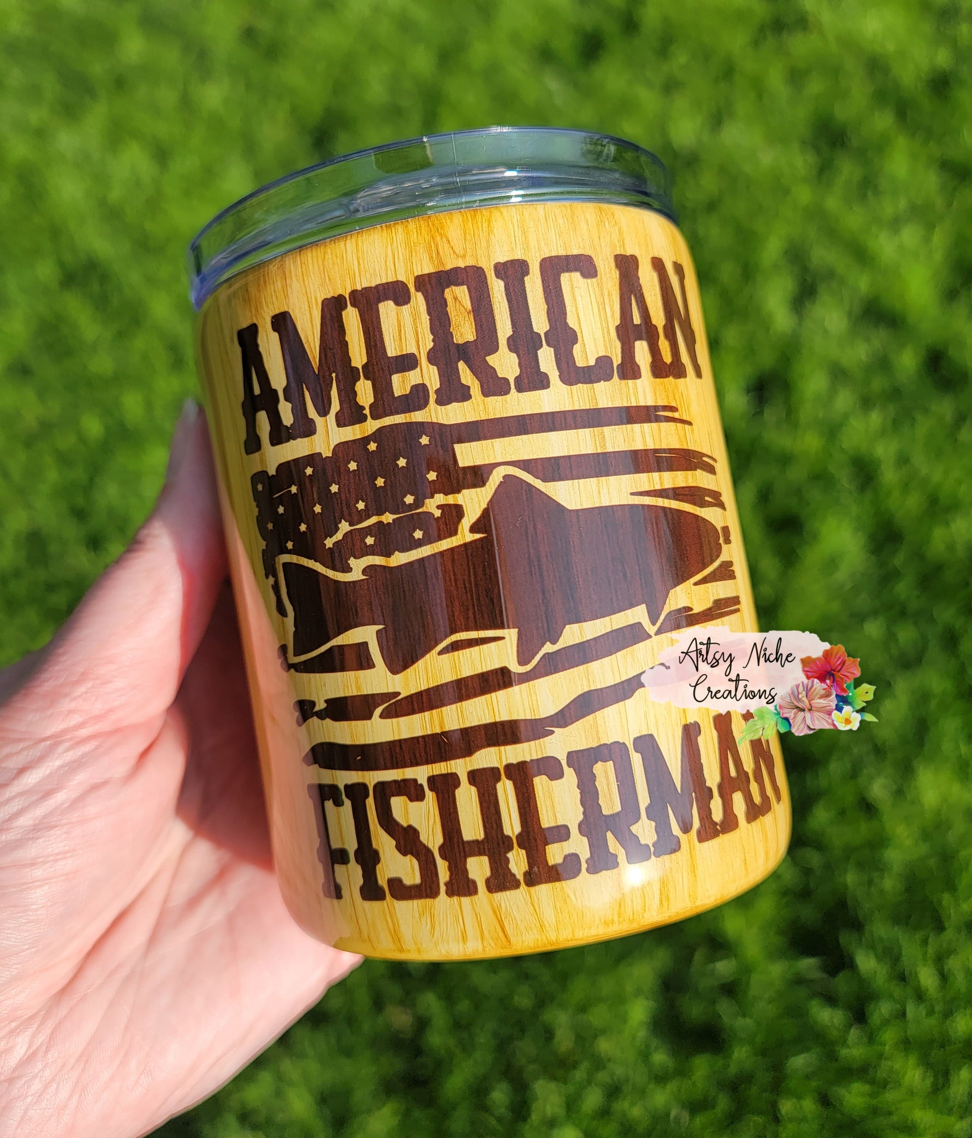 Toss your cares and lines away with this 17oz hand-crafted American Fisherman Epoxy tumbler! Our epoxy-coated tumbler won't let your worries escape and keeps your cold bevs icy-cool so you don't have to go "reel"ing for refreshment. Now, who's ready to cast away and chill?!