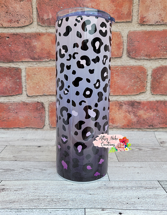 Showcase your wild side with this 20 oz Black and Purple Ombre Leopard Print Sublimation Tumbler! Let its leopard print and ombre colors roar — even if it's a bit imperfect. Unleash your inner feline and make your style purr!