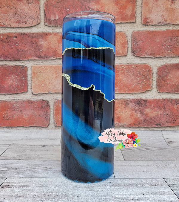 20 oz Blue and Gold Alcohol Ink Sublimation Tumbler - Imperfect