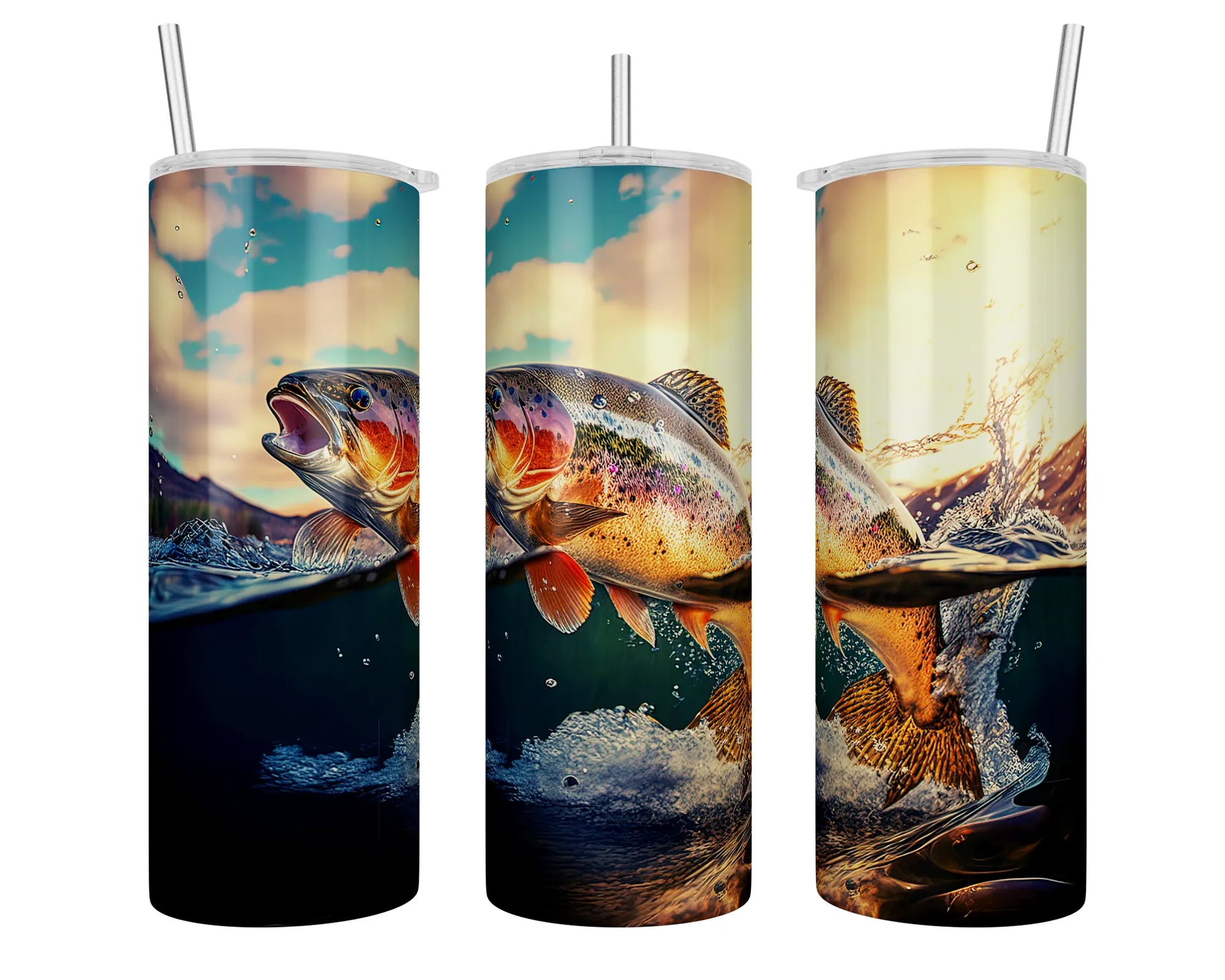 20 oz Fishing Jumping Trout Sunset Sublimation Tumbler