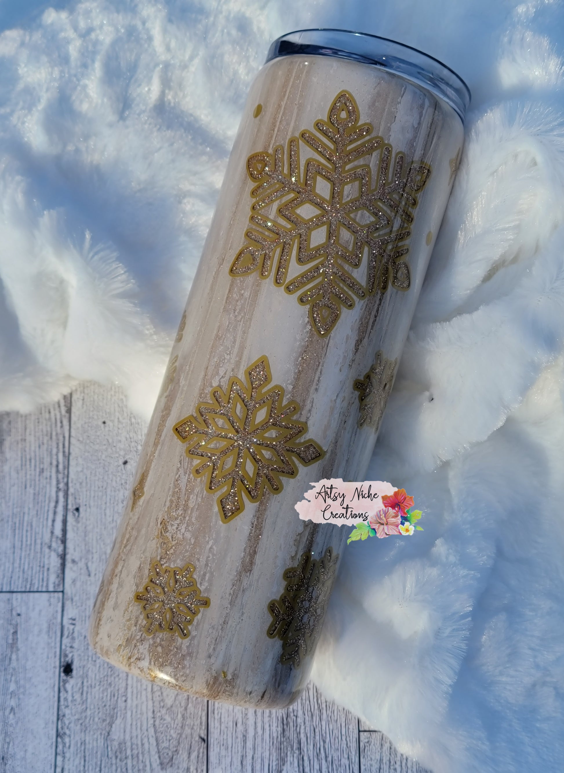 20 oz Gold Dirty Pour Peekaboo Snowflake Epoxy Tumbler