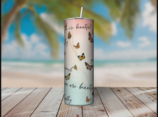 20 oz Holographic Daily Reminders Butterflies Sublimation Tumbler
