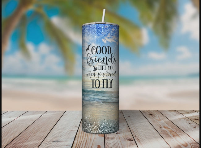 20 oz Holographic Good Friends Lift You When you Forget to Fly Sublimation Tumbler