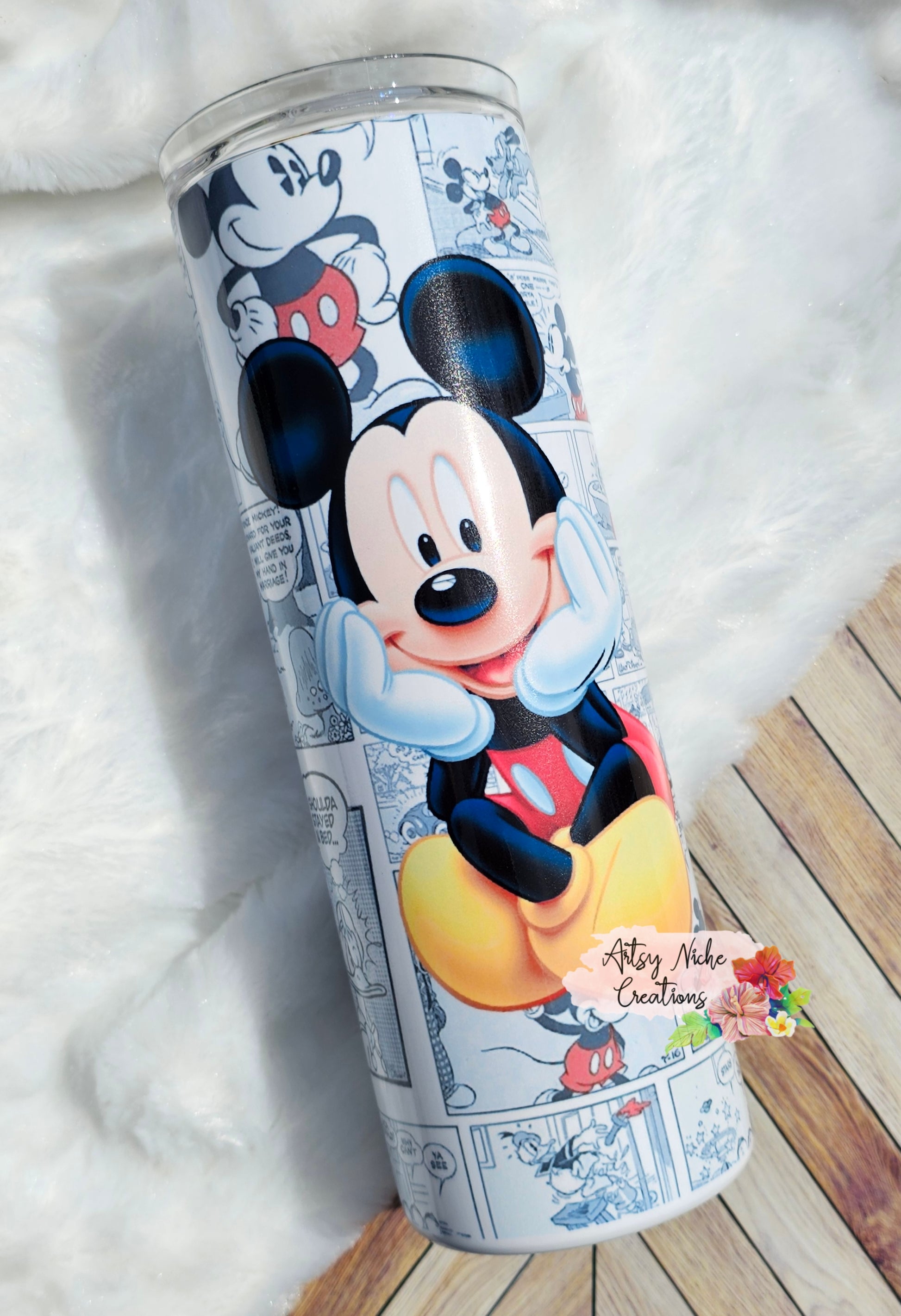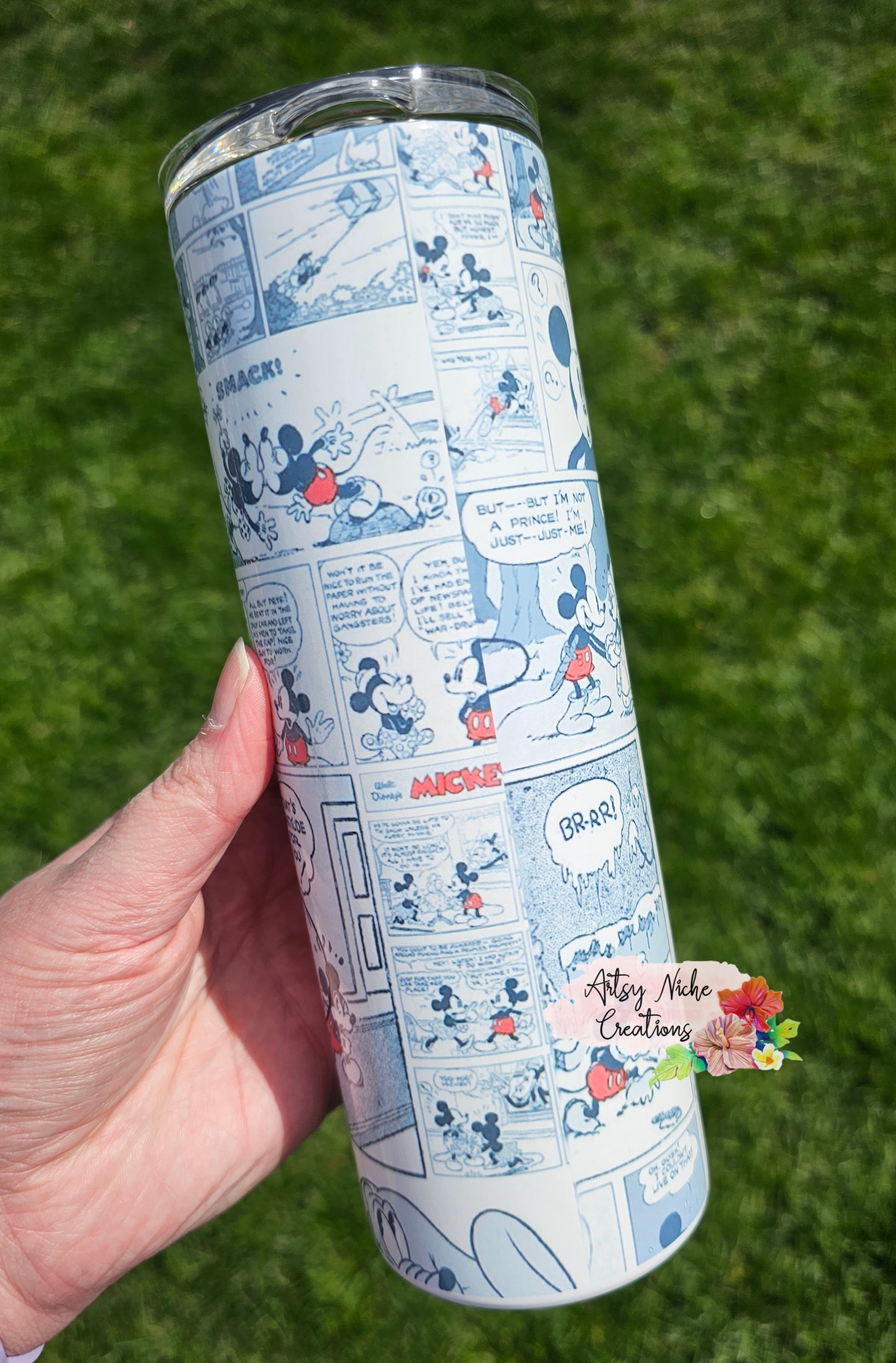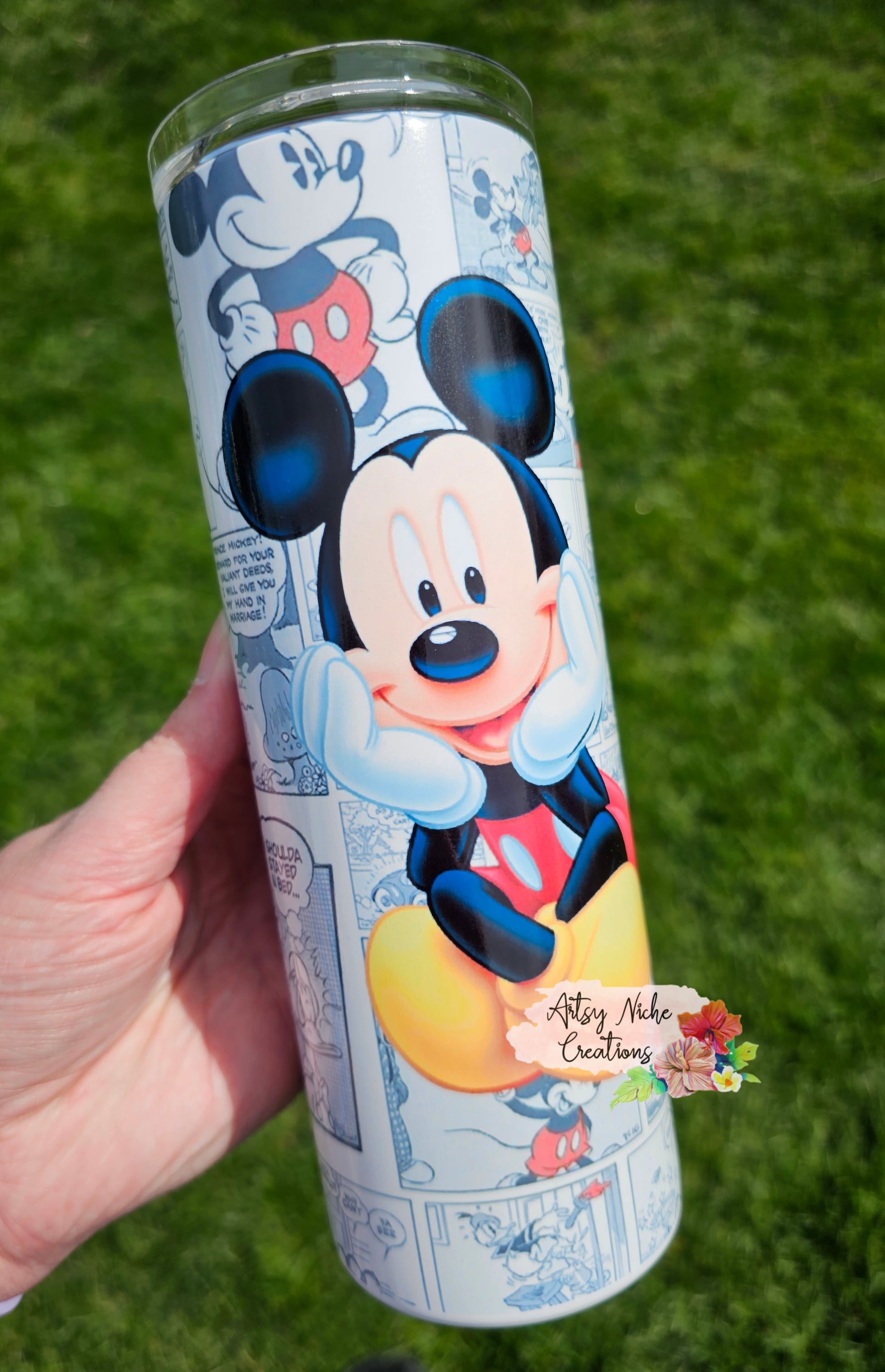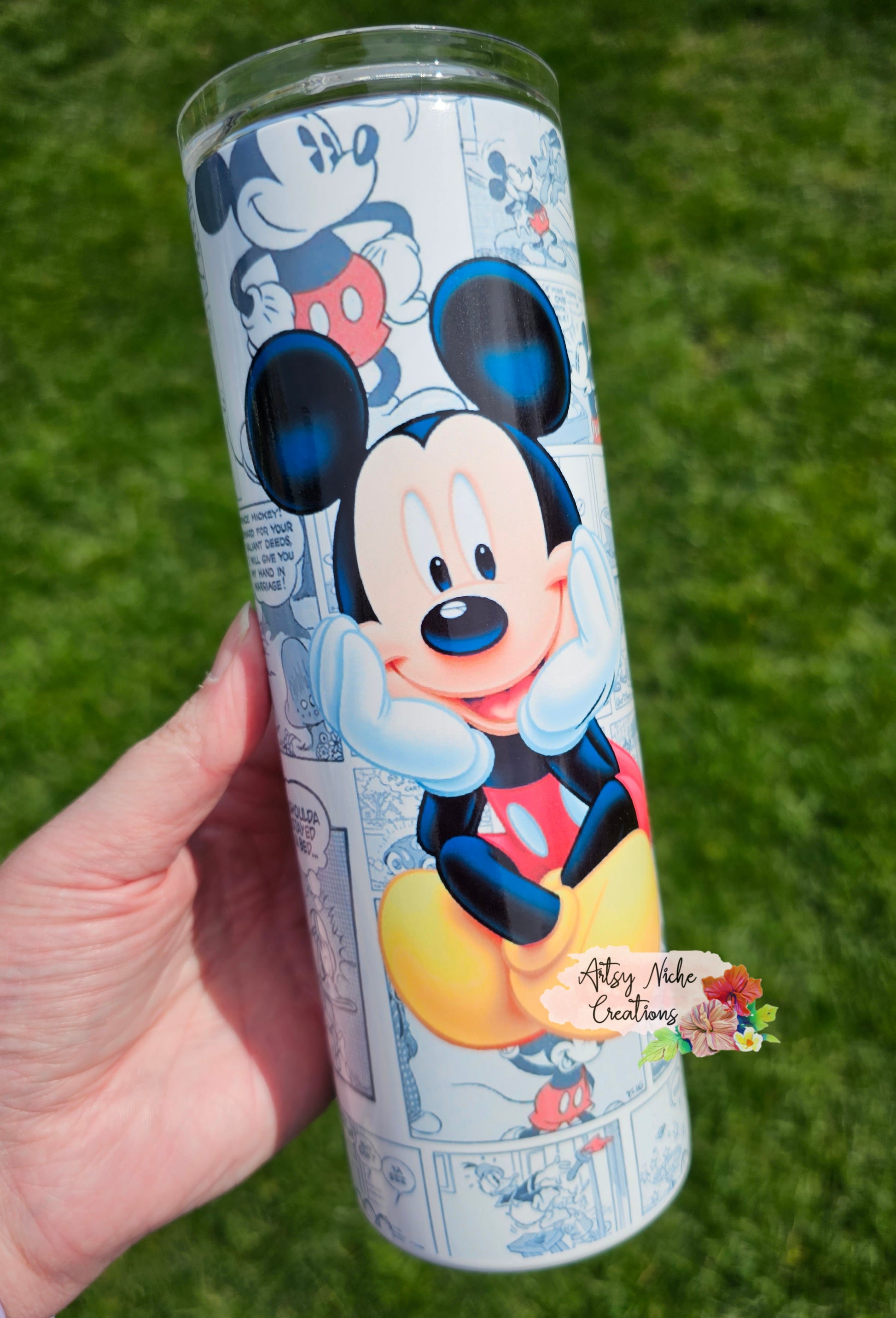 This 20 oz tumbler features a delightful Mickey Mouse comic sublimation. The vibrant design is printed onto high-grade stainless steel, ensuring a long-lasting finish. Perfect as a gift or a treat to yourself, this tumbler is sure to brighten your day.
