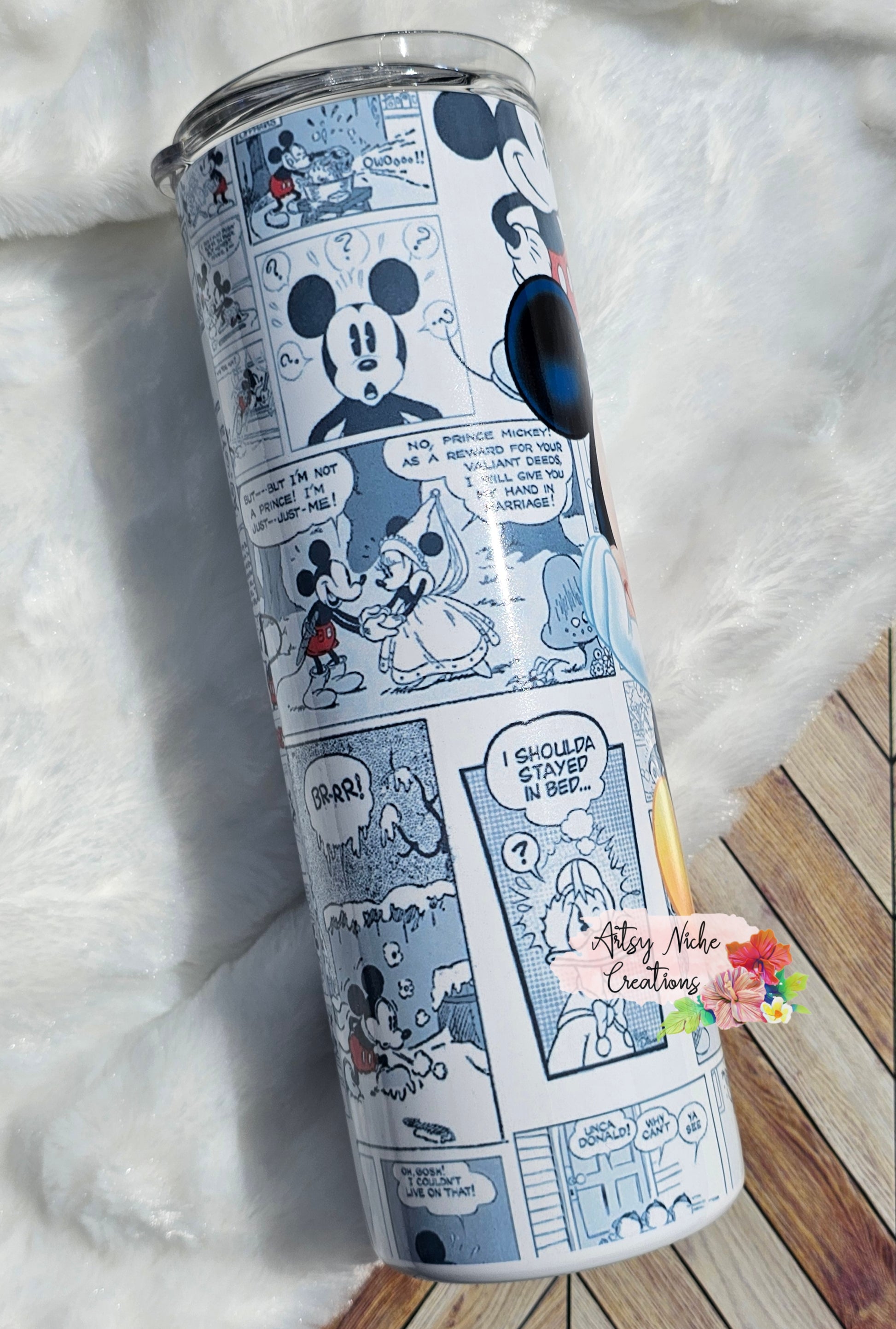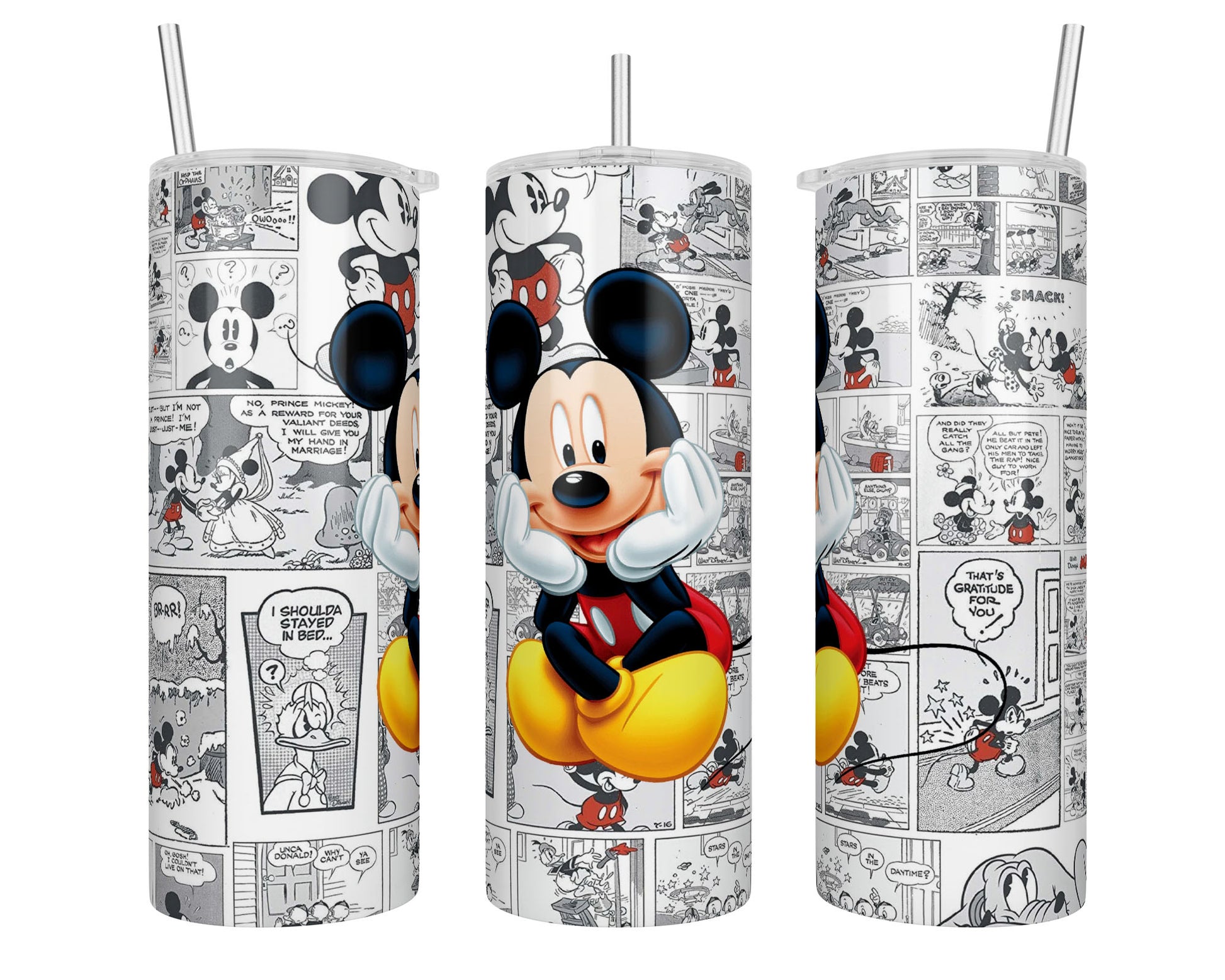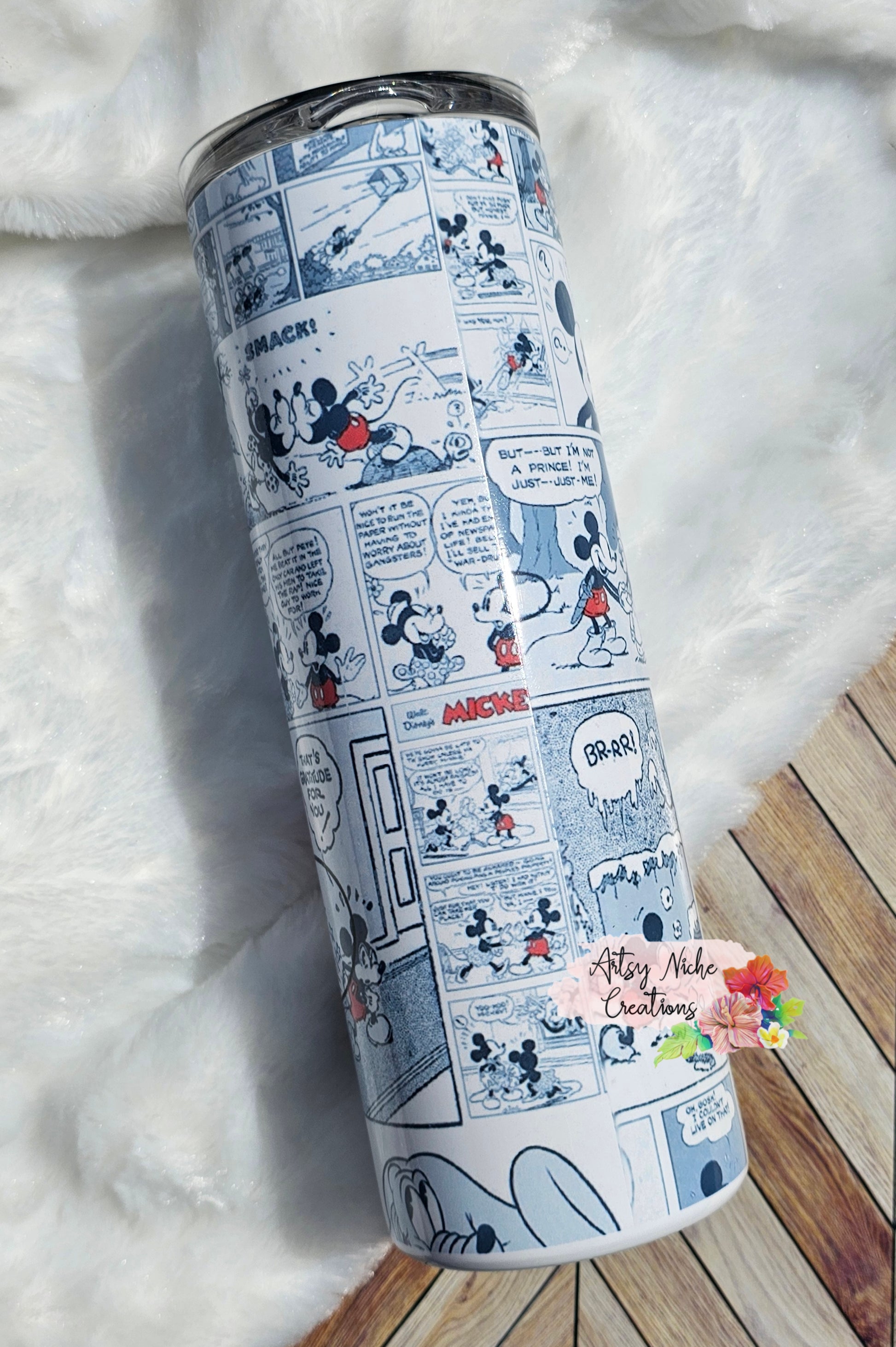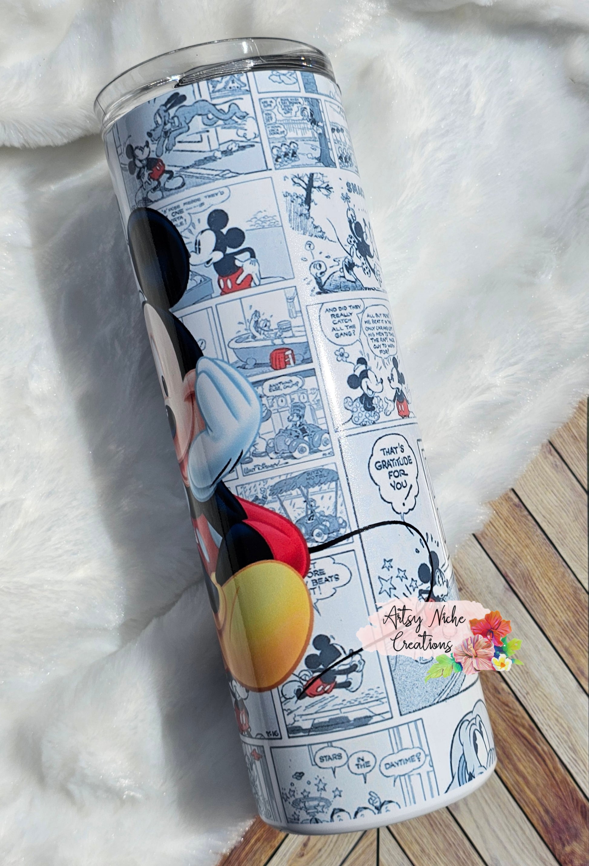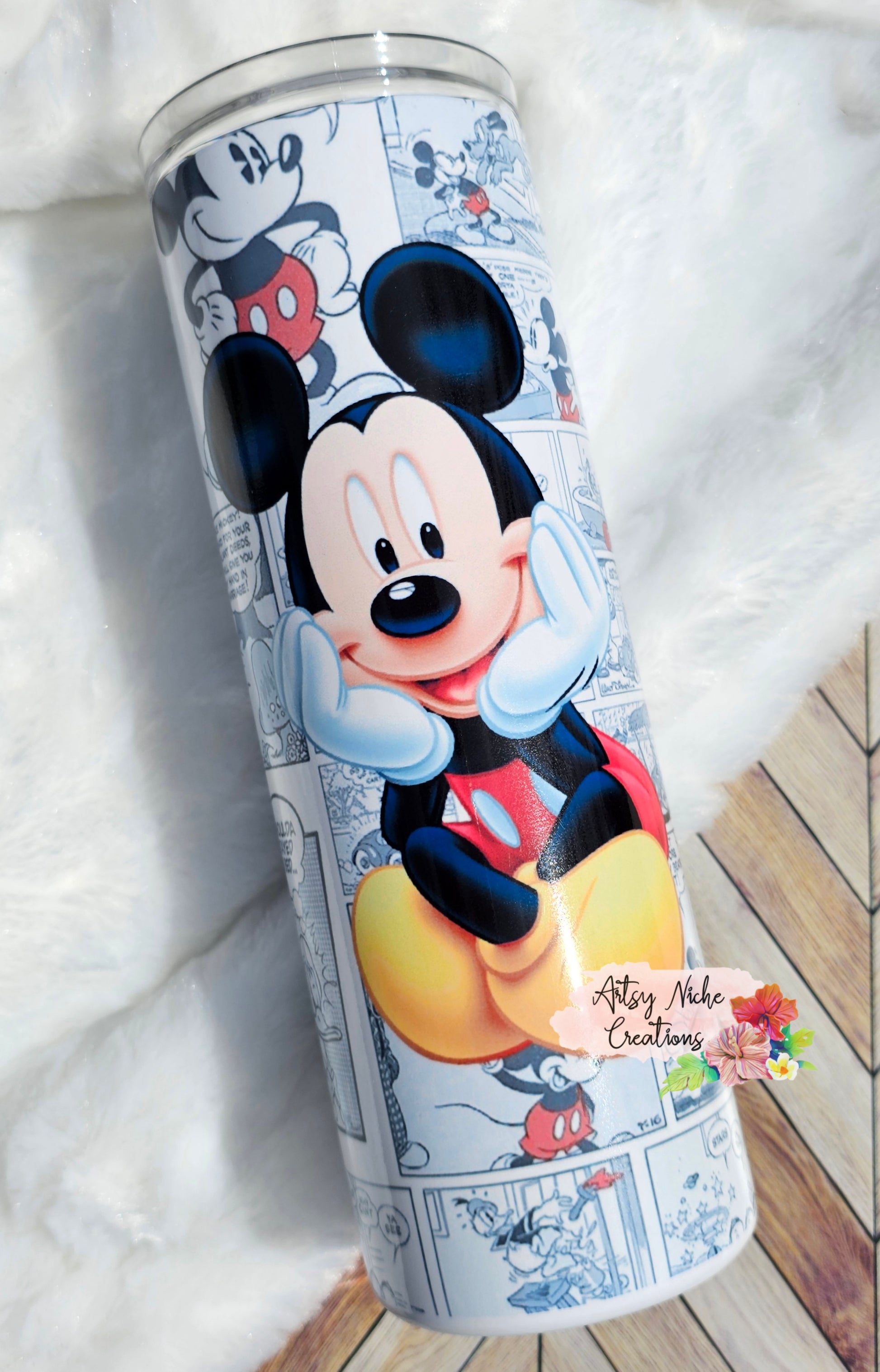 This 20 oz tumbler features a delightful Mickey Mouse comic sublimation. The vibrant design is printed onto high-grade stainless steel, ensuring a long-lasting finish. Perfect as a gift or a treat to yourself, this tumbler is sure to brighten your day.