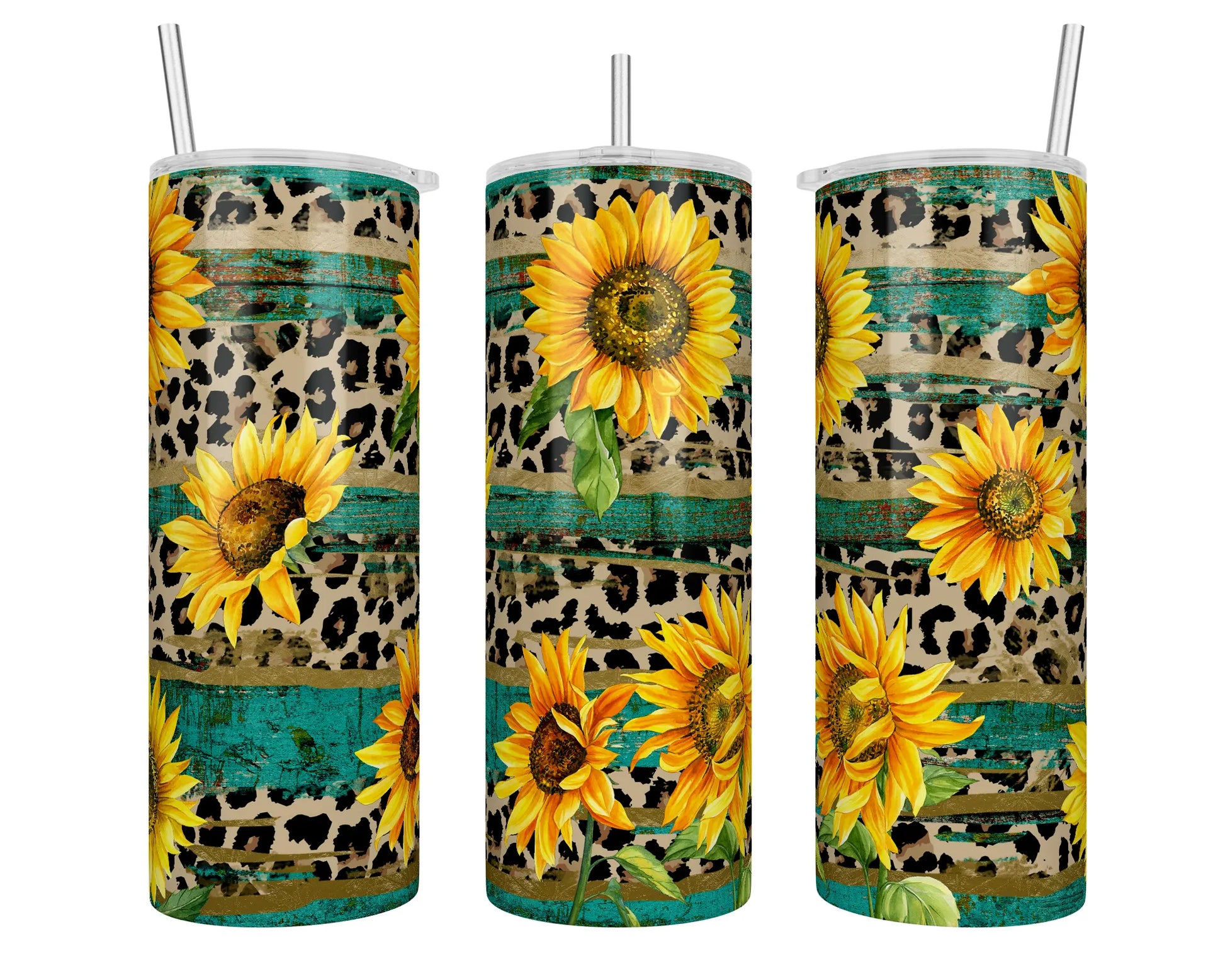 Take your hydration to the wild side with this 20 oz Pearlescent Rustic Wood Sunflower Leopard Print Sublimation Tumbler! The perfect vessel for your H2O needs, this bad boy's got it all: rustic wood, a dashing leopard print, and a sunflower sublimation to make all your sippin' dreams come true. Go wild!