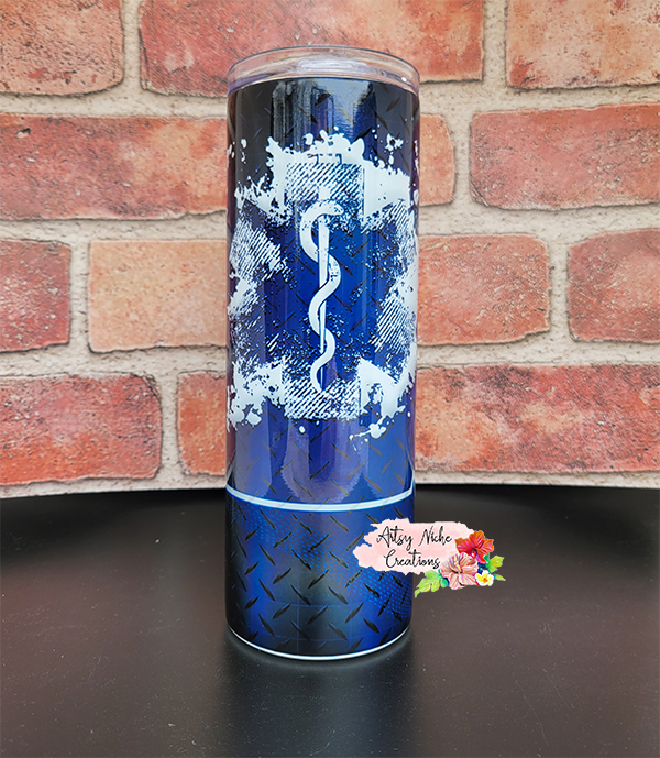 20 oz Skinny EMS Star of Life Blue Diamond Plate Sublimation Tumbler - Imperfect