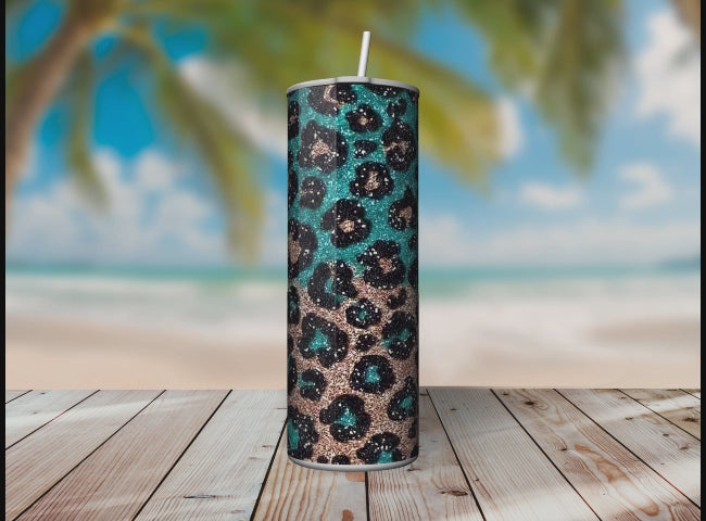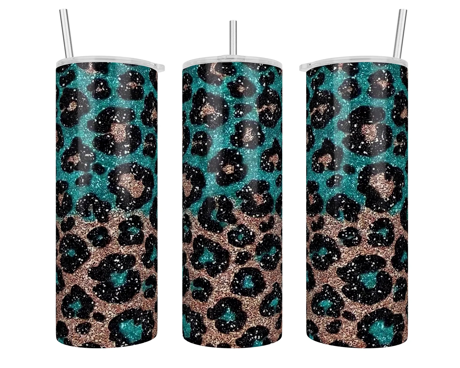 20 oz Skinny Gold and Turquoise Leopard Print Sublimation Tumbler