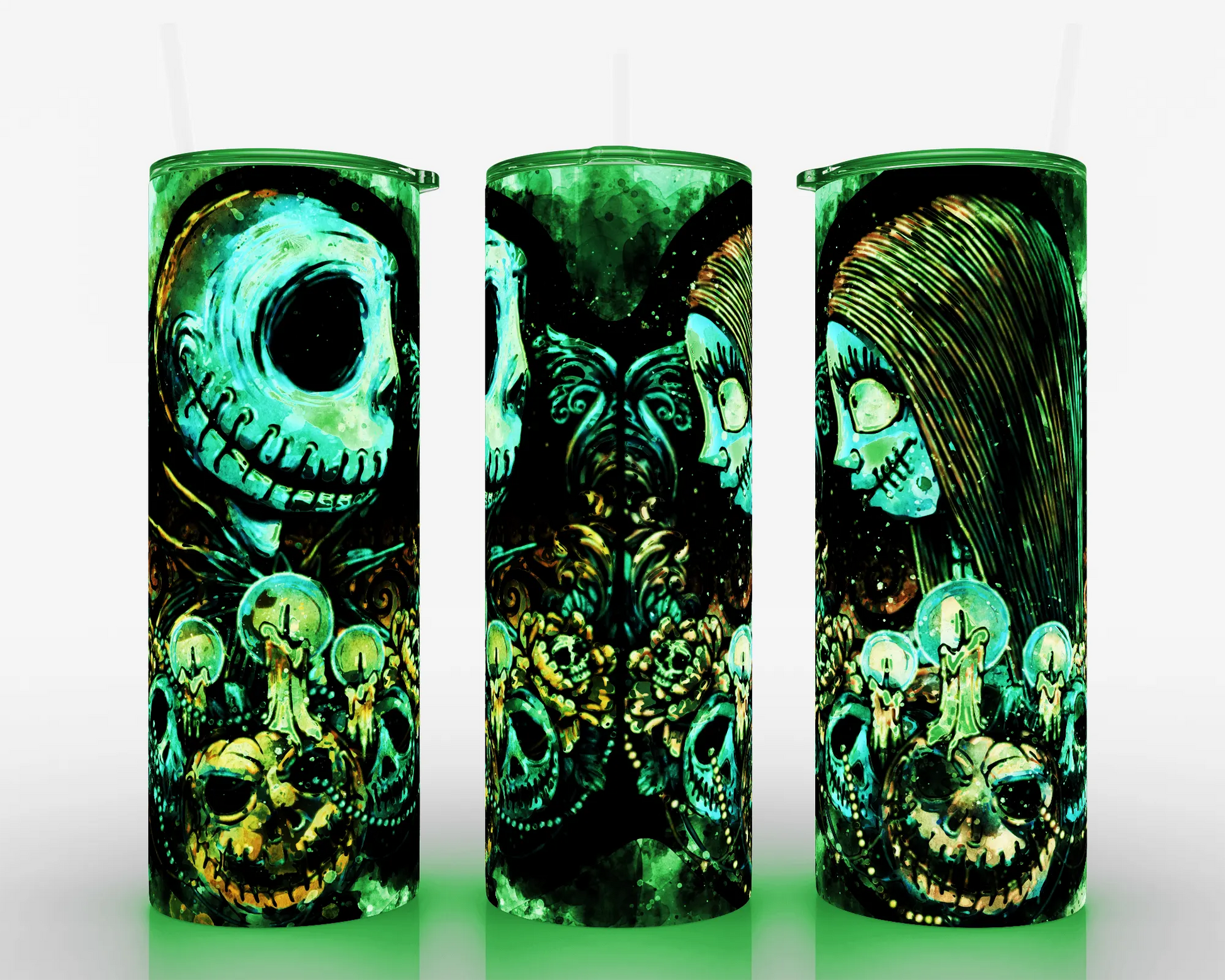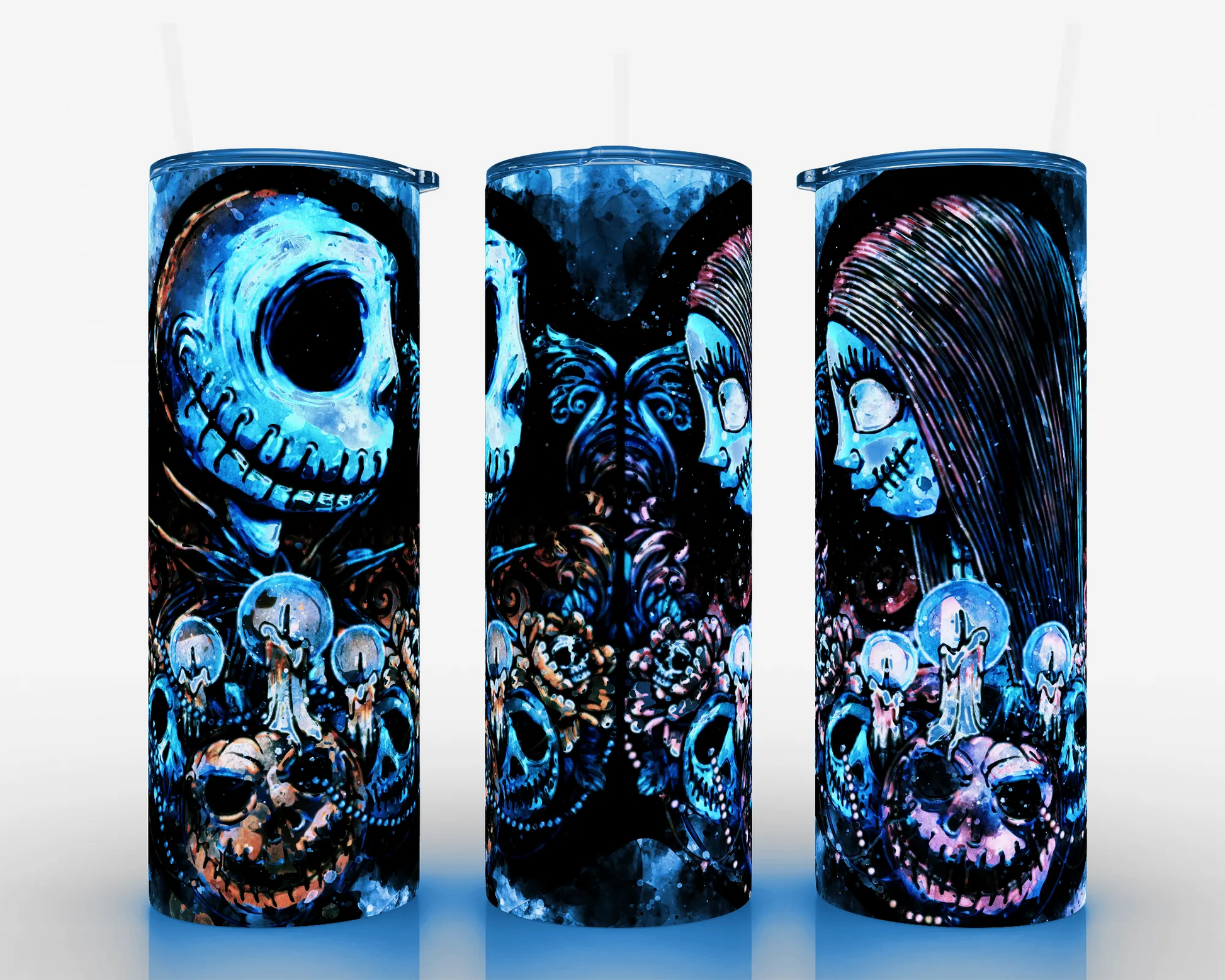 20 oz Skinny Jack and Sally Pumpkin Heads Sublimation Tumbler
