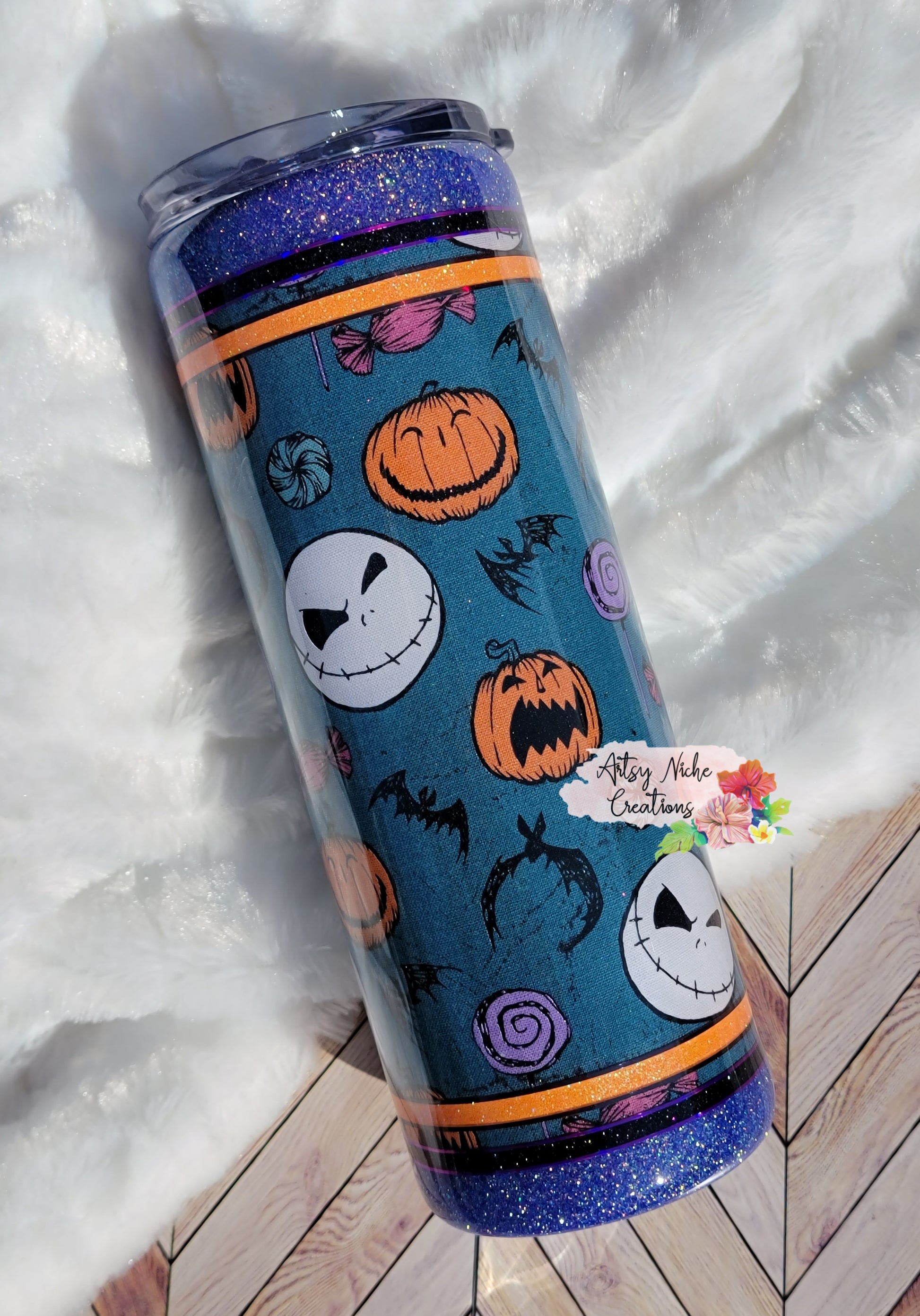 Take the plunge with the 20 oz Skinny Jack Pumpkin King Epoxy Tumbler, boasting a bold Jack Skellington design! Enjoy a beverage with the King of Pumpkins and boldly go where no other tumbler has gone before. Take a risk and make a statement!