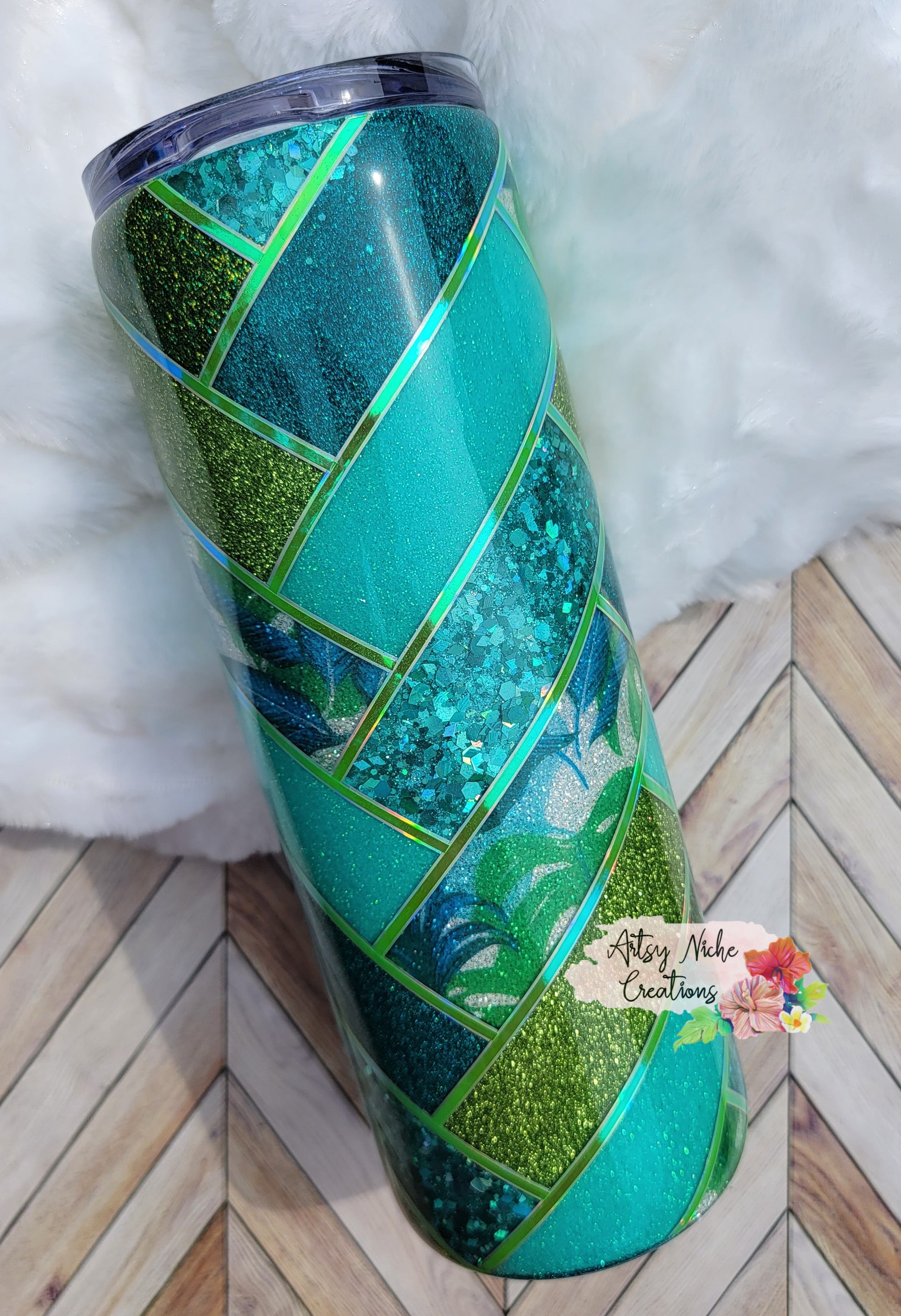 Stay hydrated in style with this glitzy 20 oz Skinny Tropical Herringbone Epoxy Tumbler Set! This tumbler is designed to keep your drinks cold with its double insulated wall and fun tropical design. Fabulous and functional - a perfect combo!