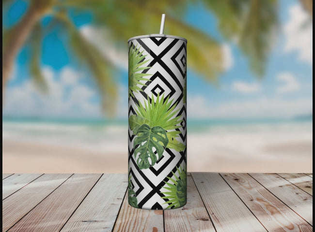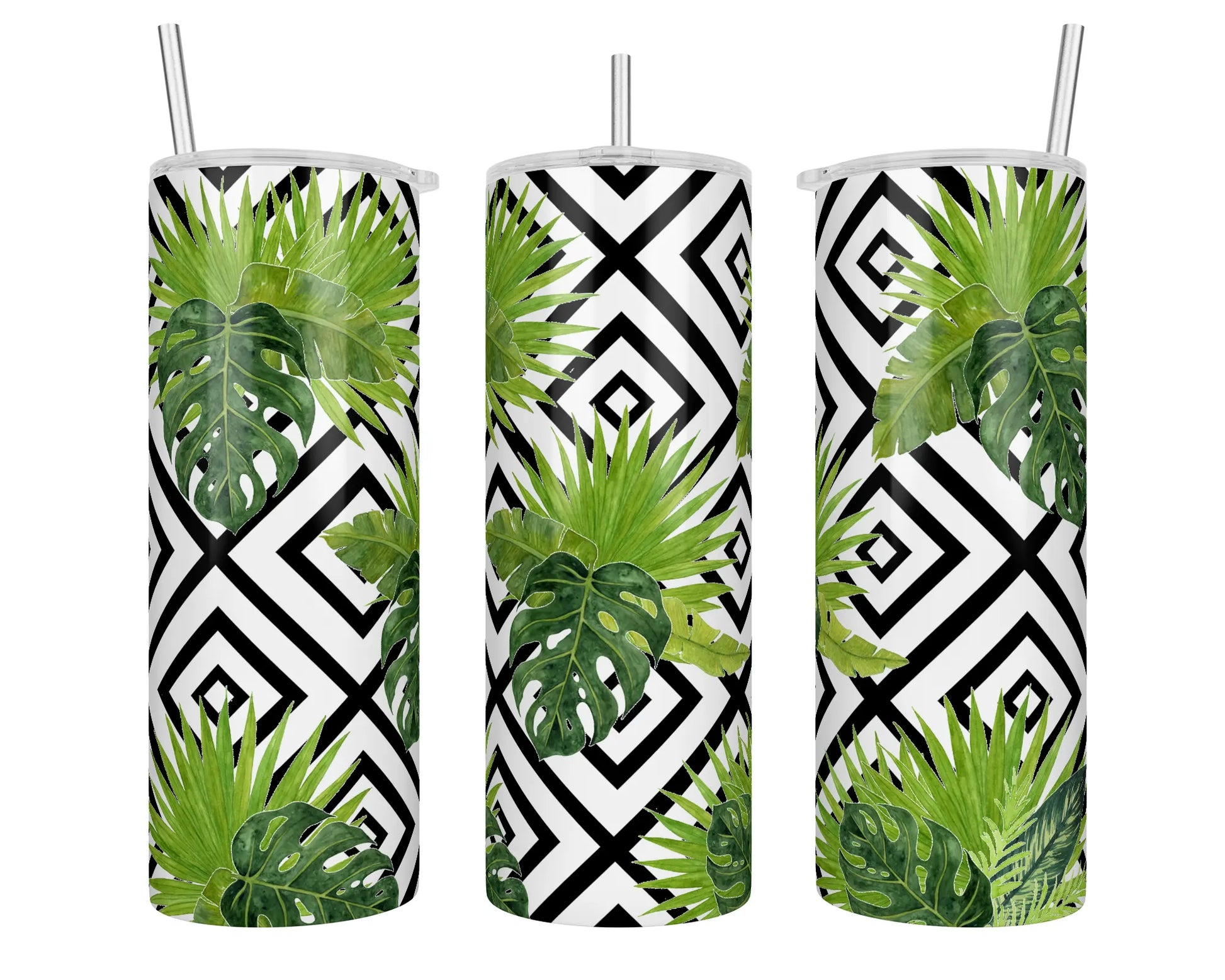 20 oz Skinny Tropical Monstera Leaves Square Pattern Sublimation Tumbler