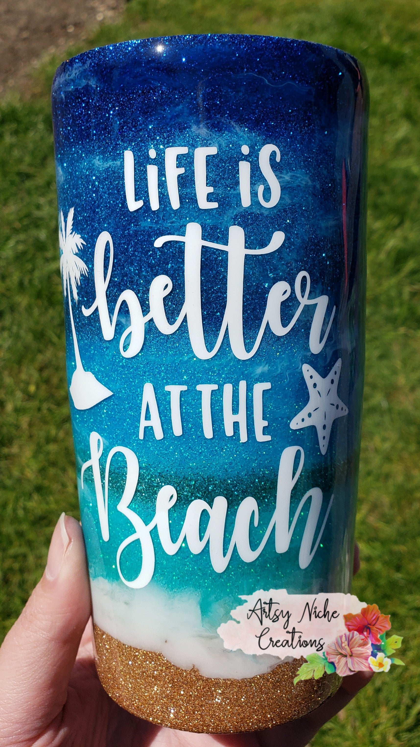 This 20 oz Tapered Life is Better at the Beach Epoxy Tumbler is a fun way to show your beach vibes! Take your favorite drink and a reminder of just how awesome life can be with you wherever you go. So, grab this epoxy tumbler and let the waves of good times roll!