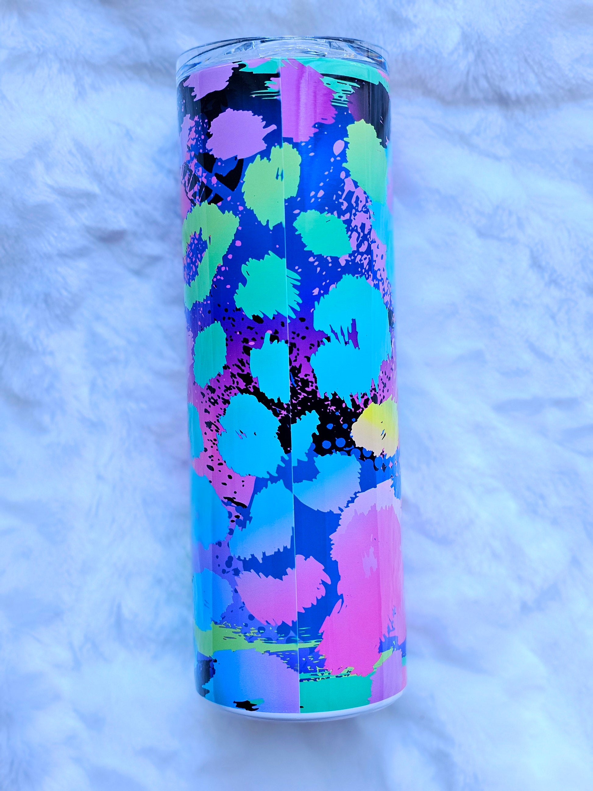 20 oz Vibrant Colorful Leopard Cheetah Print Splashed Paint Sublimation Tumbler - Imperfect