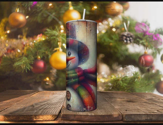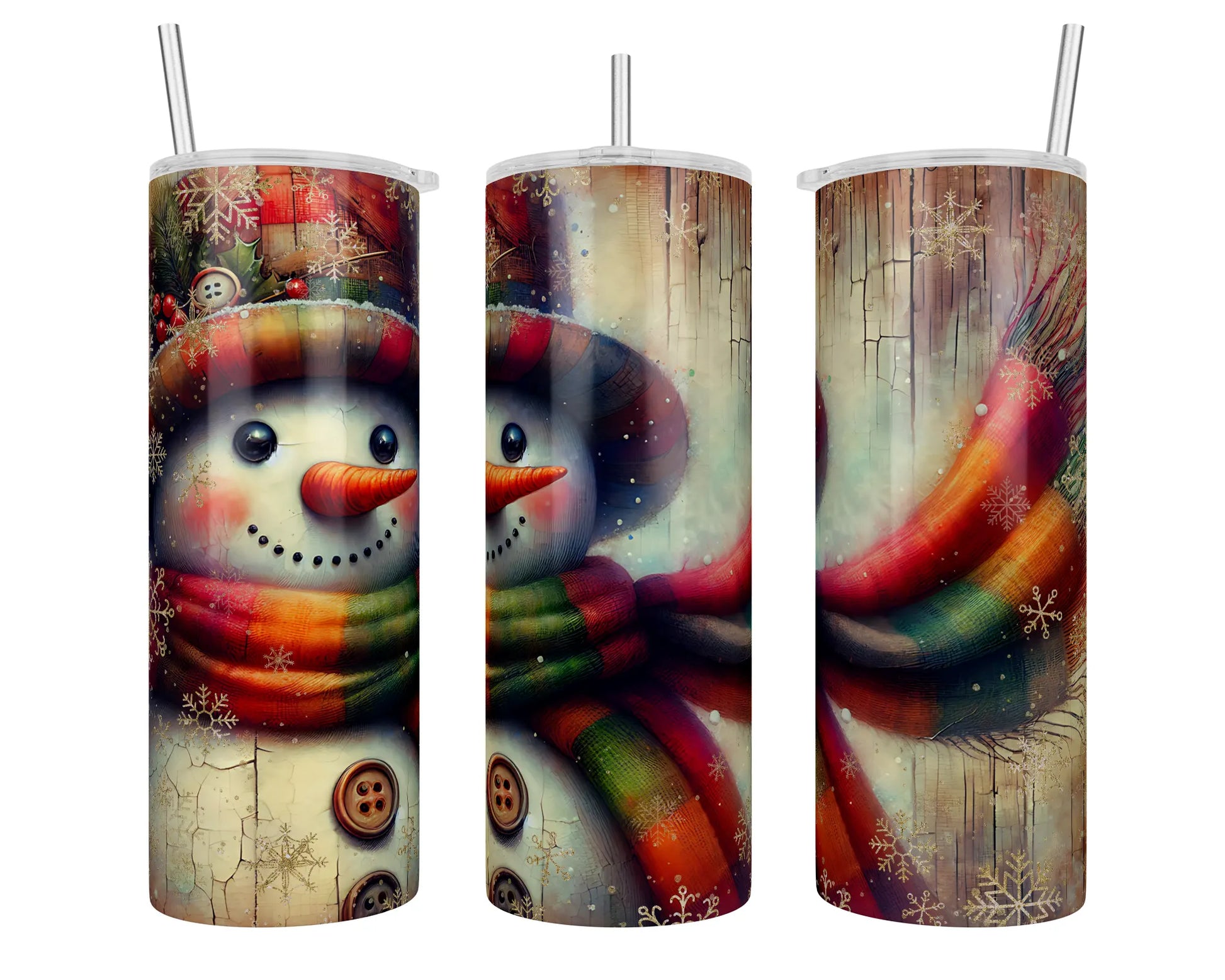 20 oz Vibrant Vintage Style Snowman Christmas Sublimation Tumbler
