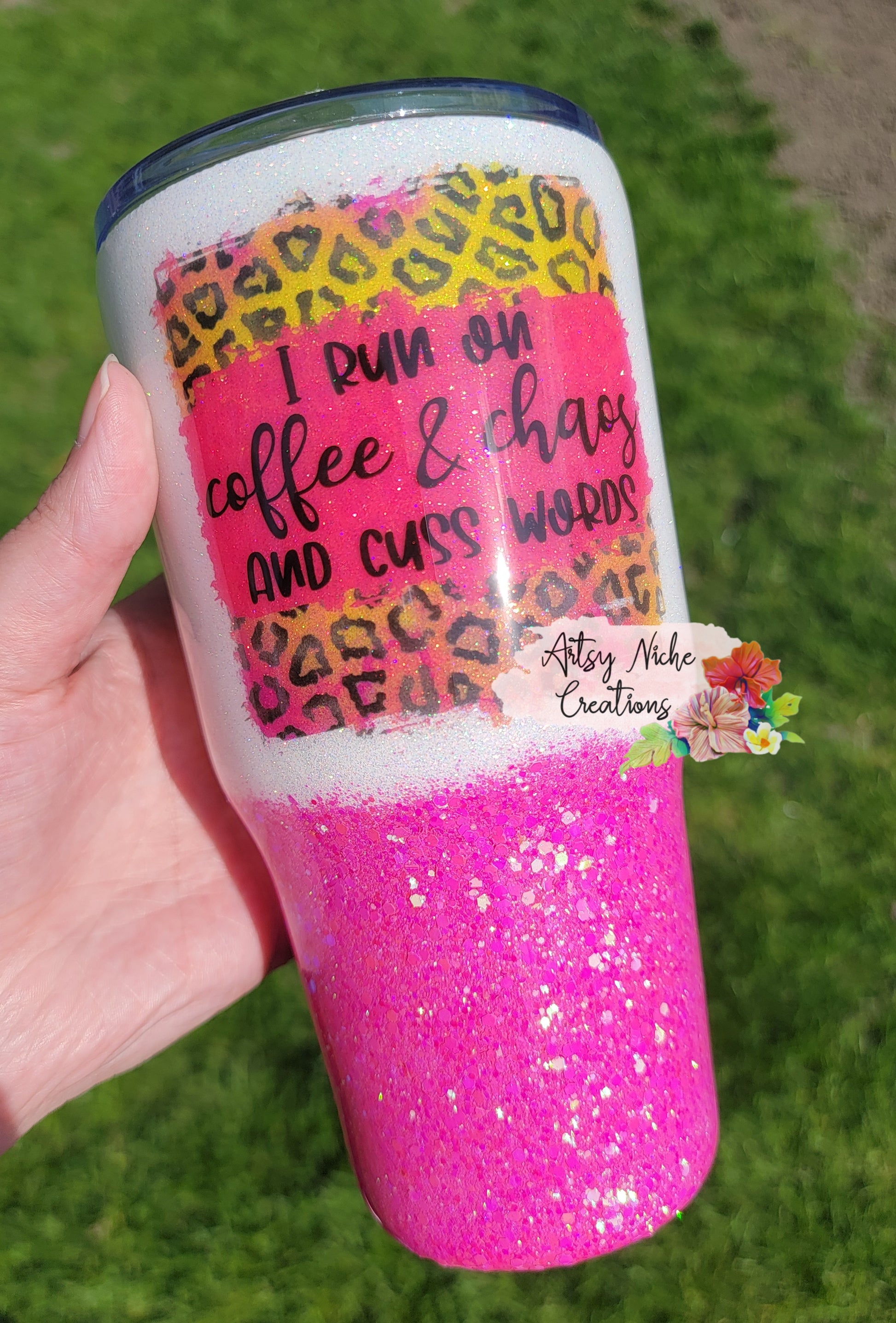 27 oz Personalized I Run on Coffee & Chaos and Cuss Words Epoxy Tumbler