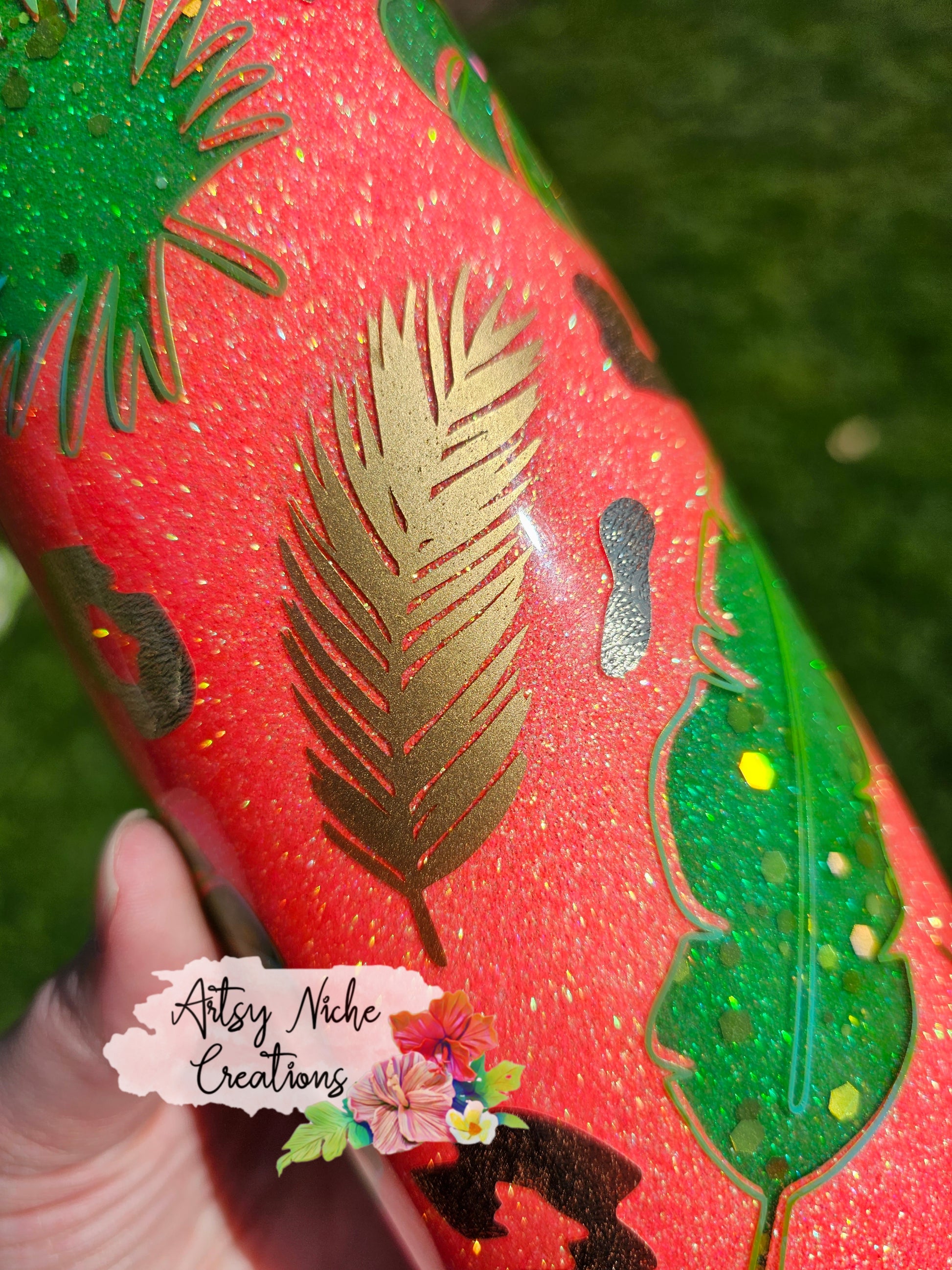 30 oz Coral Tropical Double Peekaboo Epoxy Tumbler