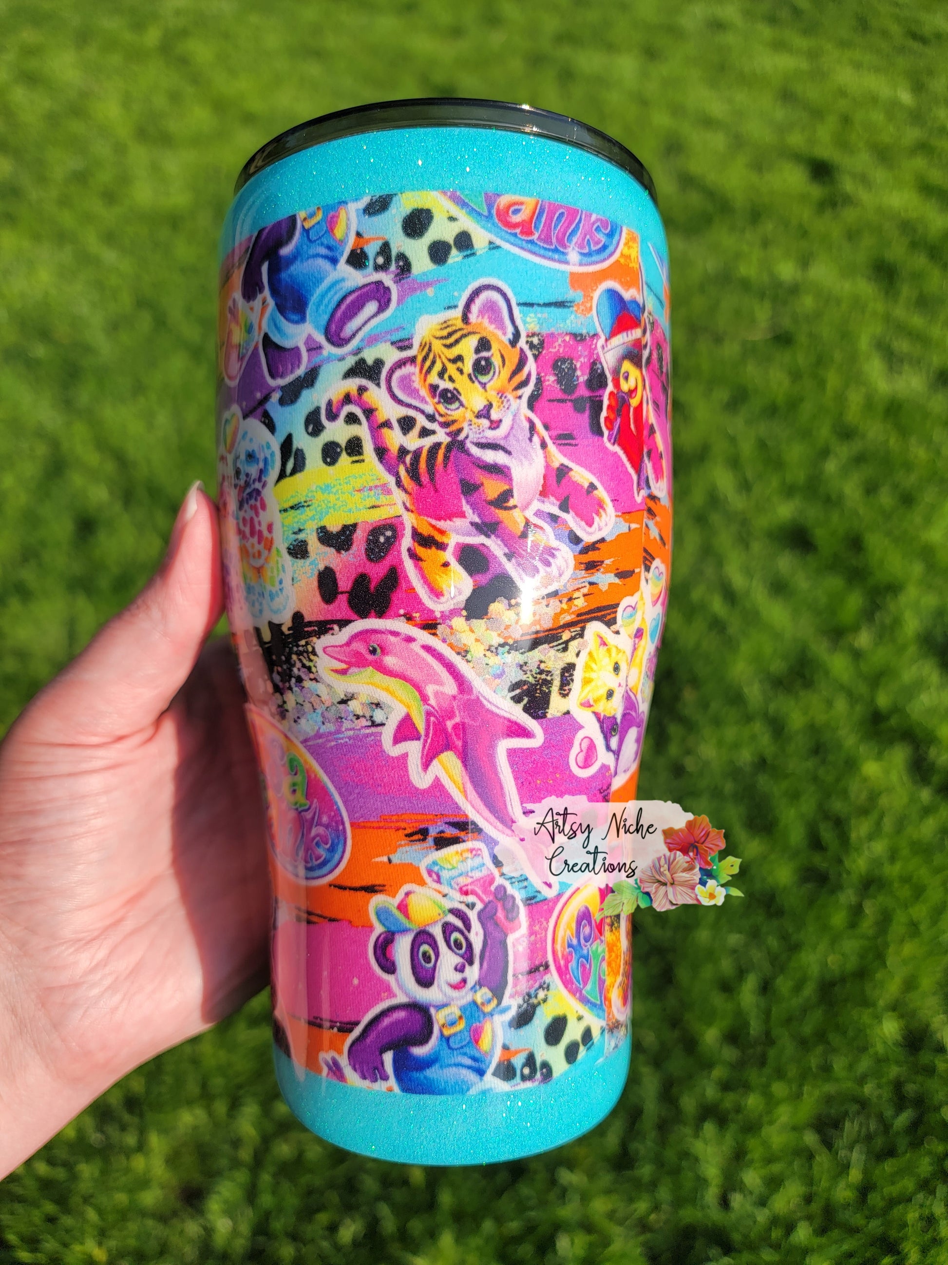 Enjoy Lisa Frank's iconic '90's designs with this fun 30 oz epoxy tumbler. Whether you're sipping your favorite drink or just wanting to add a pop of color to your outfit, this eye-catching accessory is sure to make a statement. Show off your wild side and get groovy with this sweet tumbler! ;)