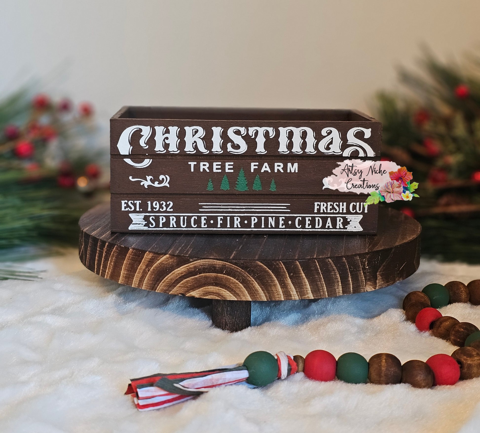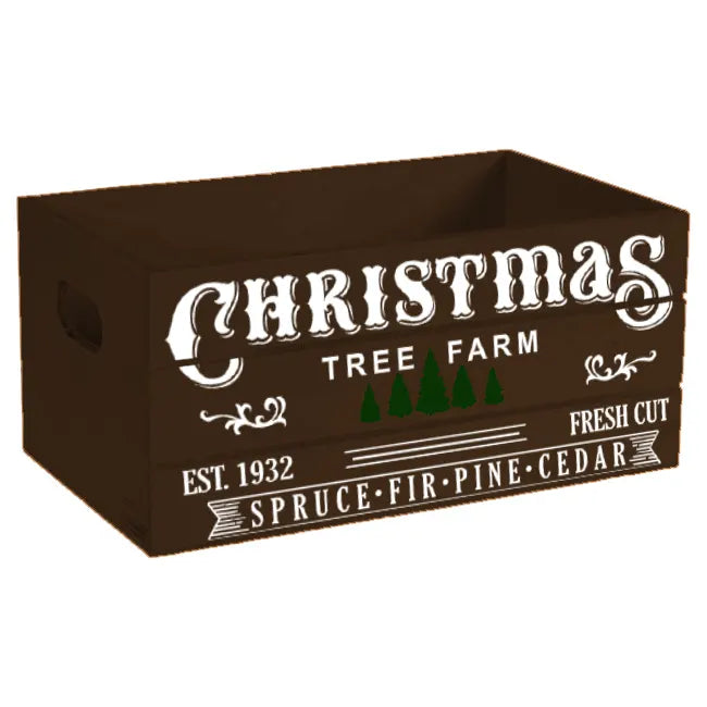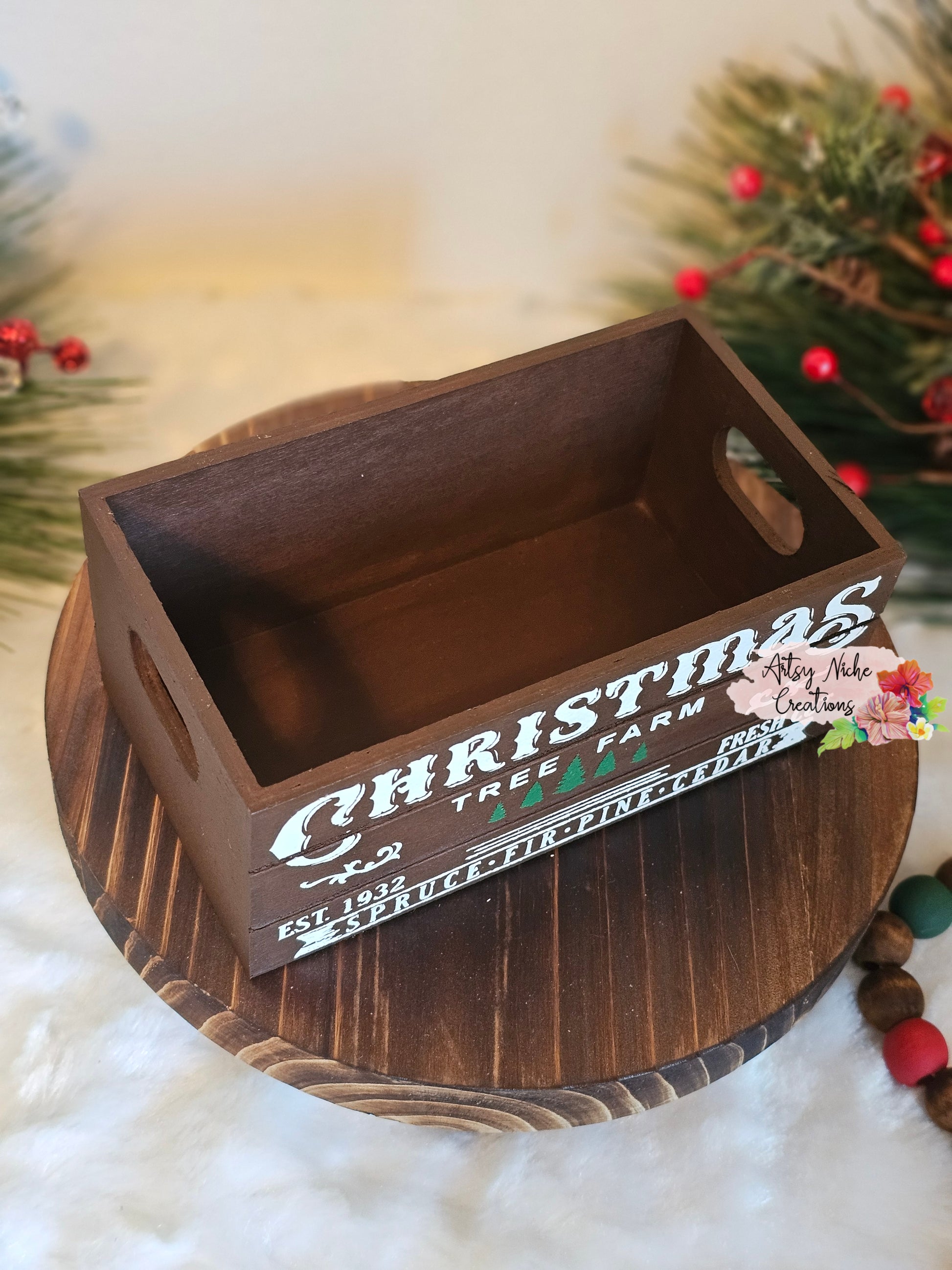 Christmas Tree Farm Brown Design Holiday Wood Mini Crate