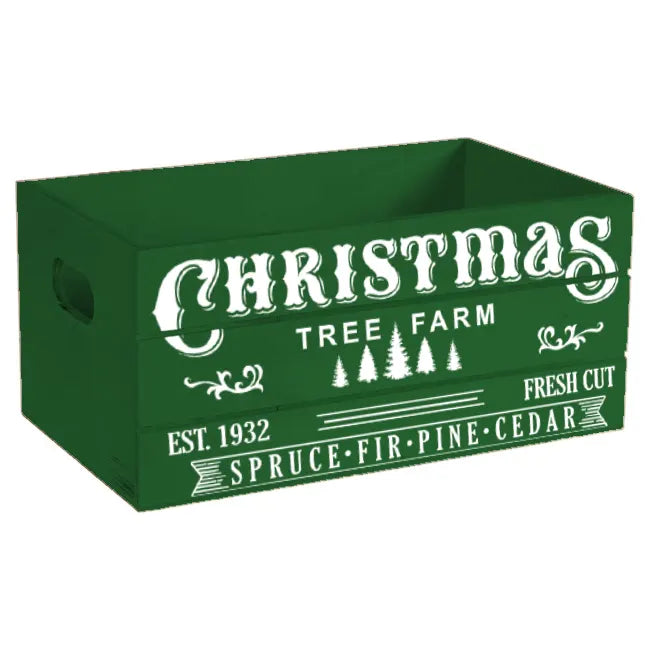 Get in the festive spirit with our Christmas Tree Farm Green Design Holiday Wood Mini Crate! This mini crate, perfect for gifting, features a playful holiday design that will add a whimsical touch to any holiday decor. Spread some joy and nostalgia by giving the gift of this adorable holiday crate.