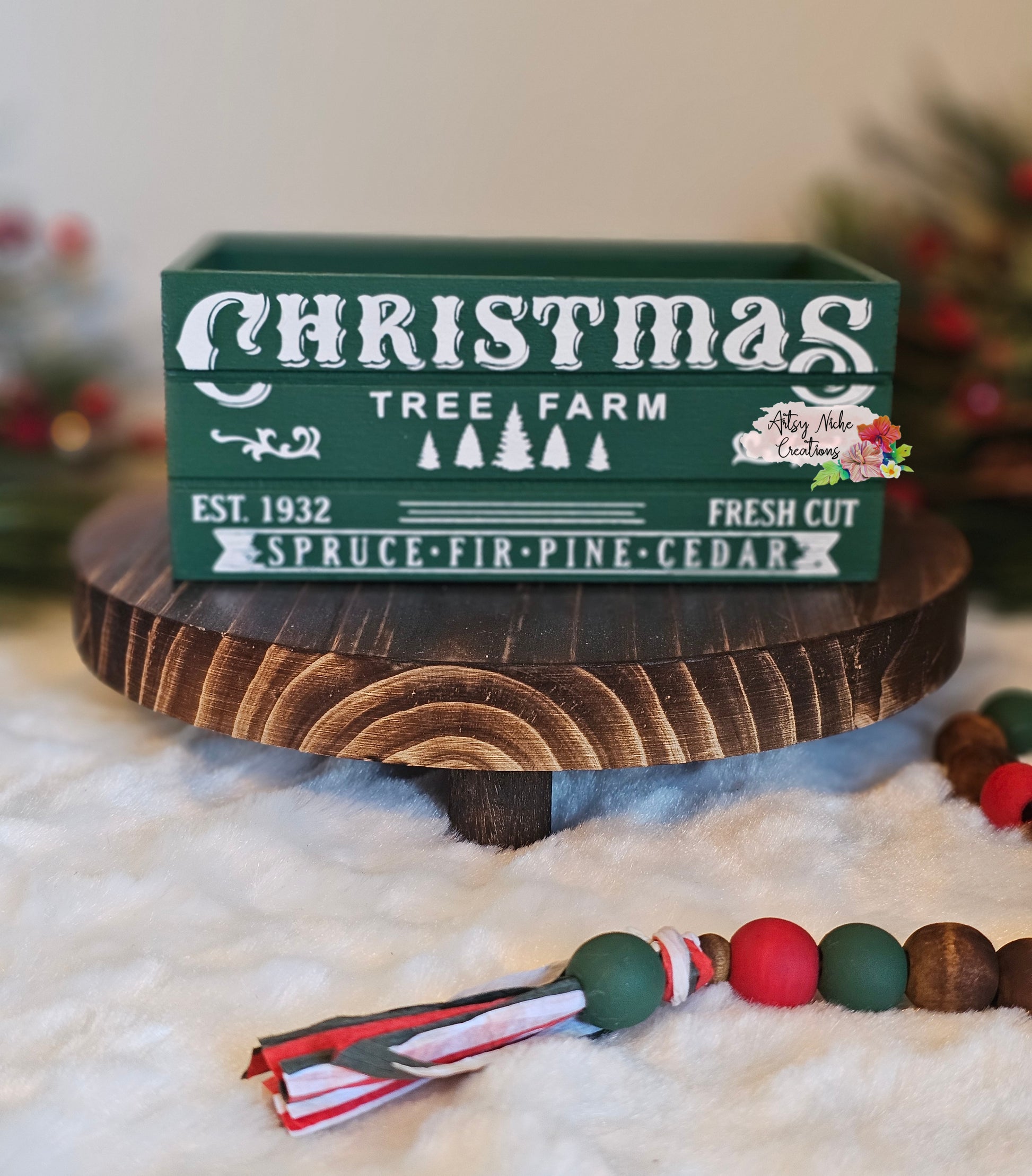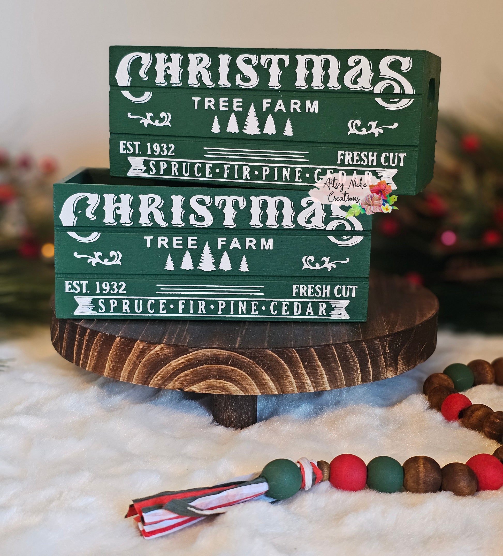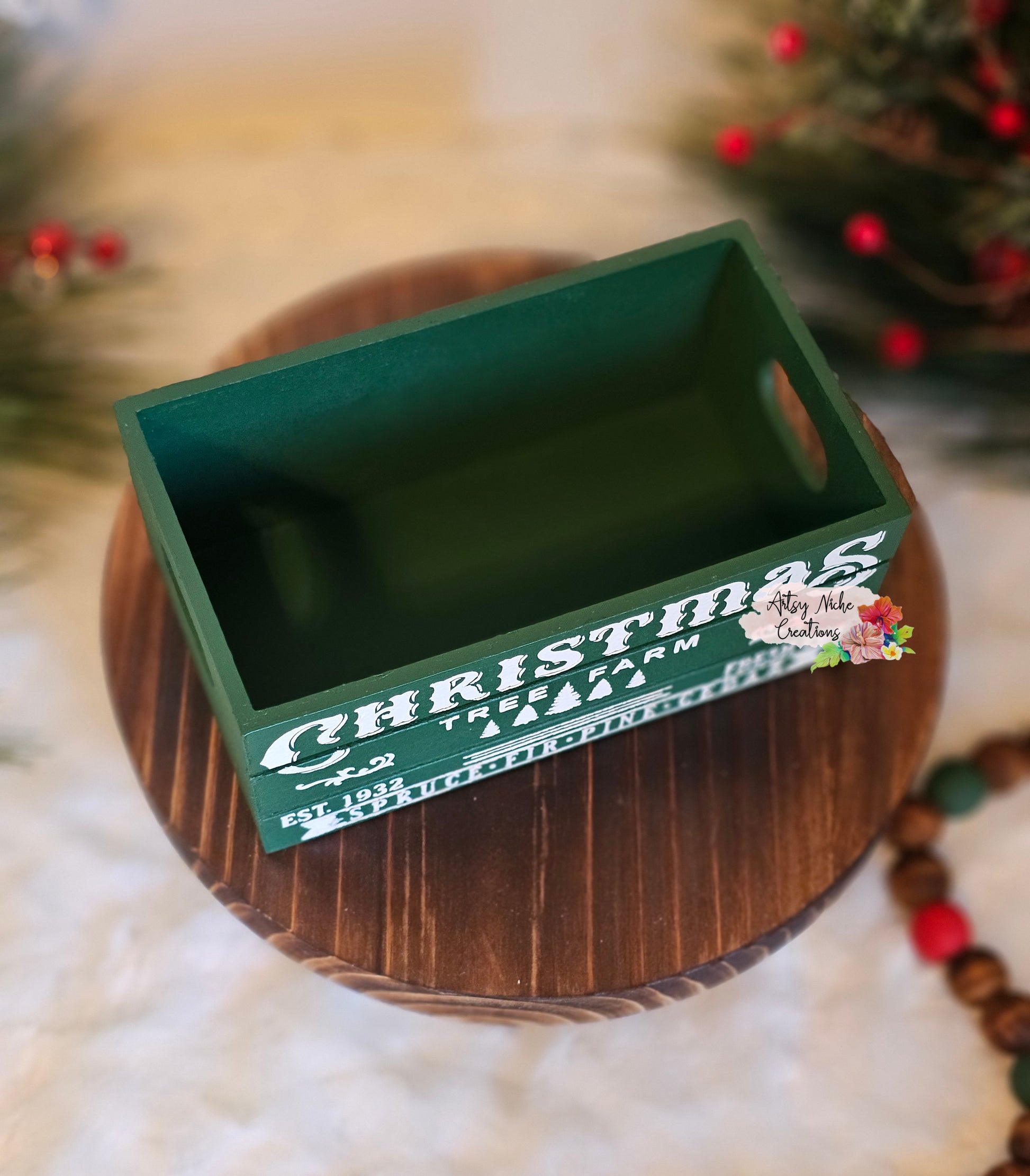 Christmas Tree Farm Green Design Holiday Wood Mini Crate