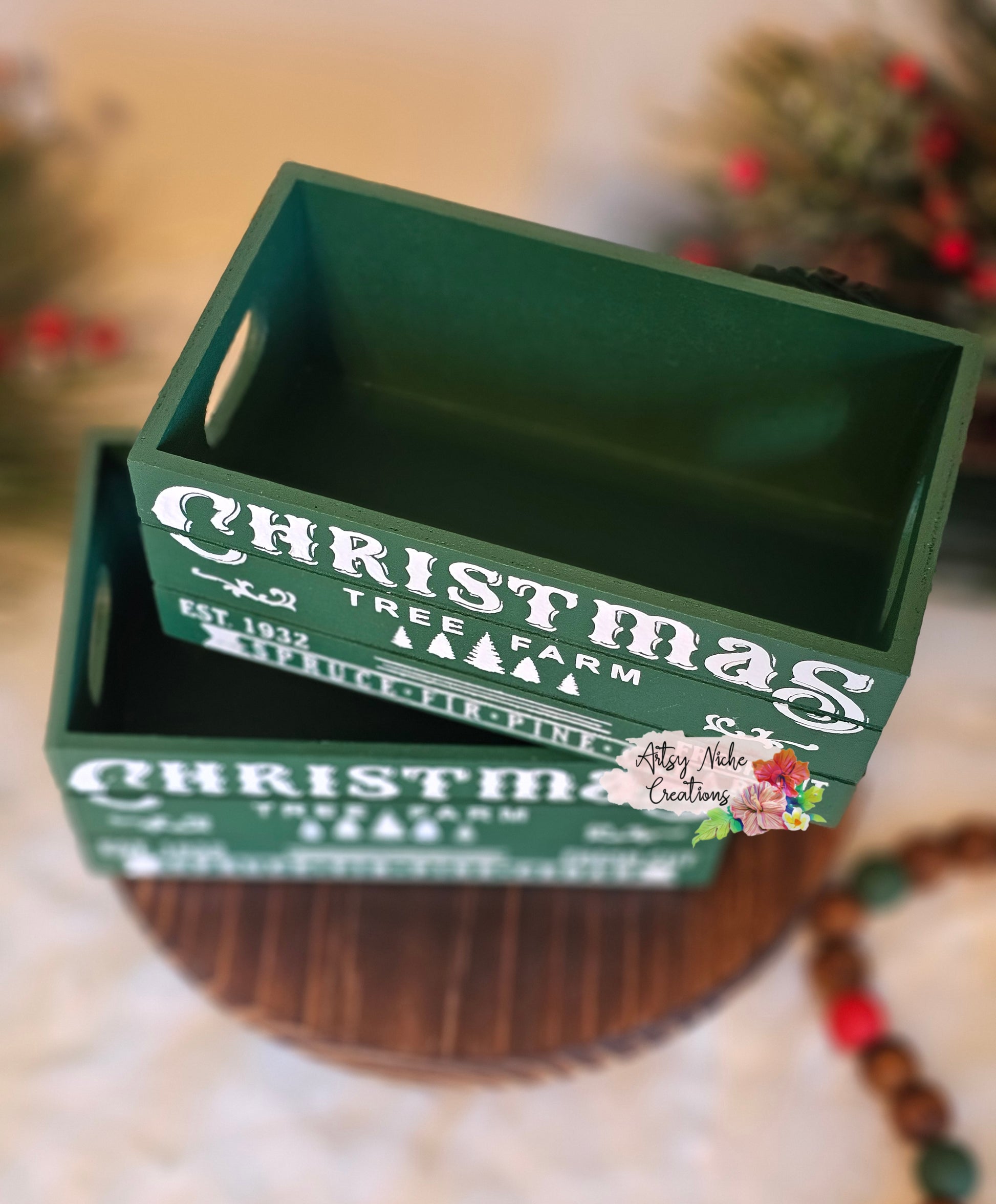 @artsynichecreations Mini Wood Crates Stenciled & Painted 🎄 #stenciled #dollartreediy #decoartpaint #hotcocoa #hotchocolate #pawlidays #smallgiftideas #homedecore #giftcardholder #christmas2024 #fyp #artsynichecreations #winterwonderland #threetiertray #teachergiftideas ♬ Jingle Bells Trap - Memê no Beat