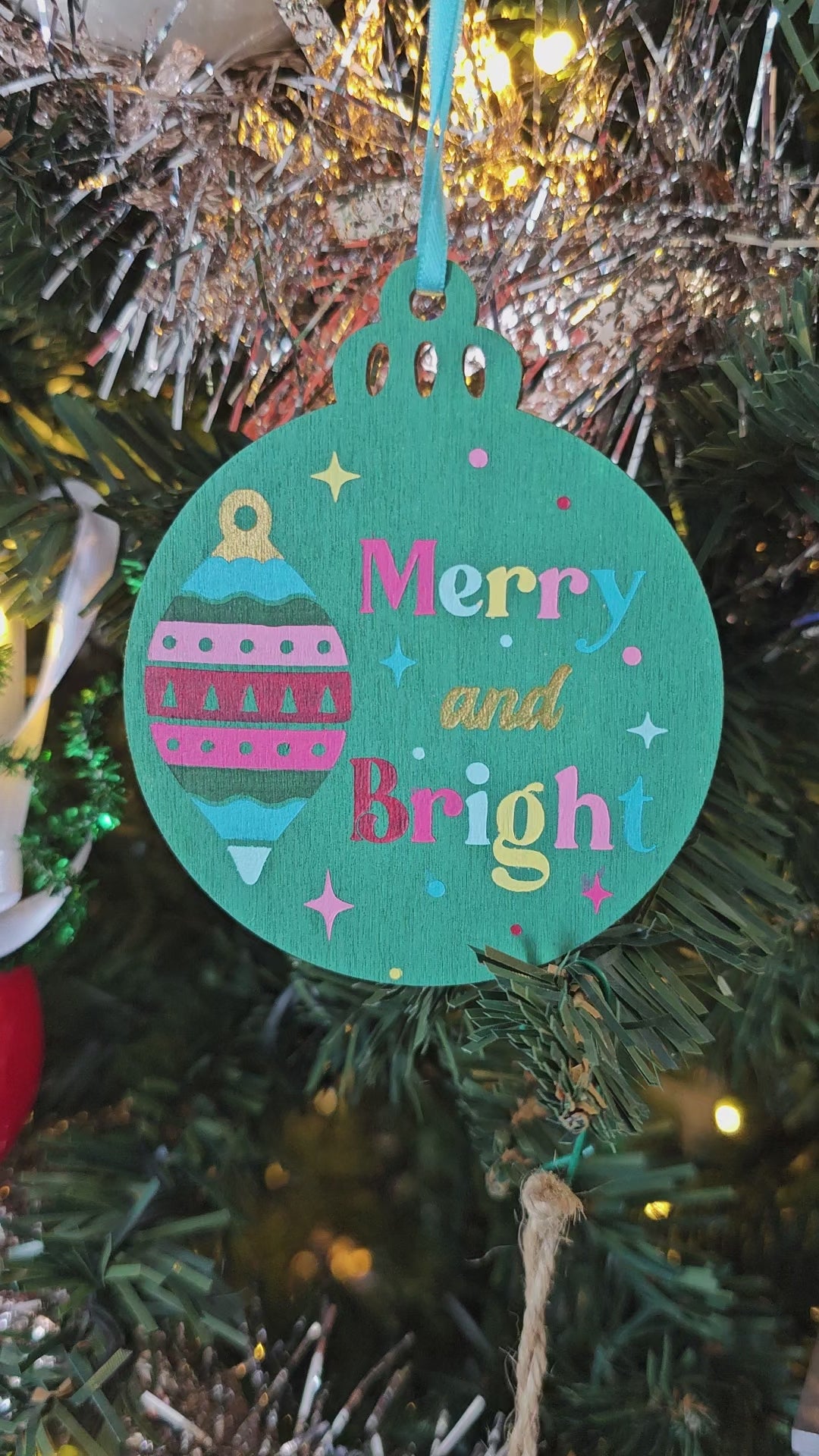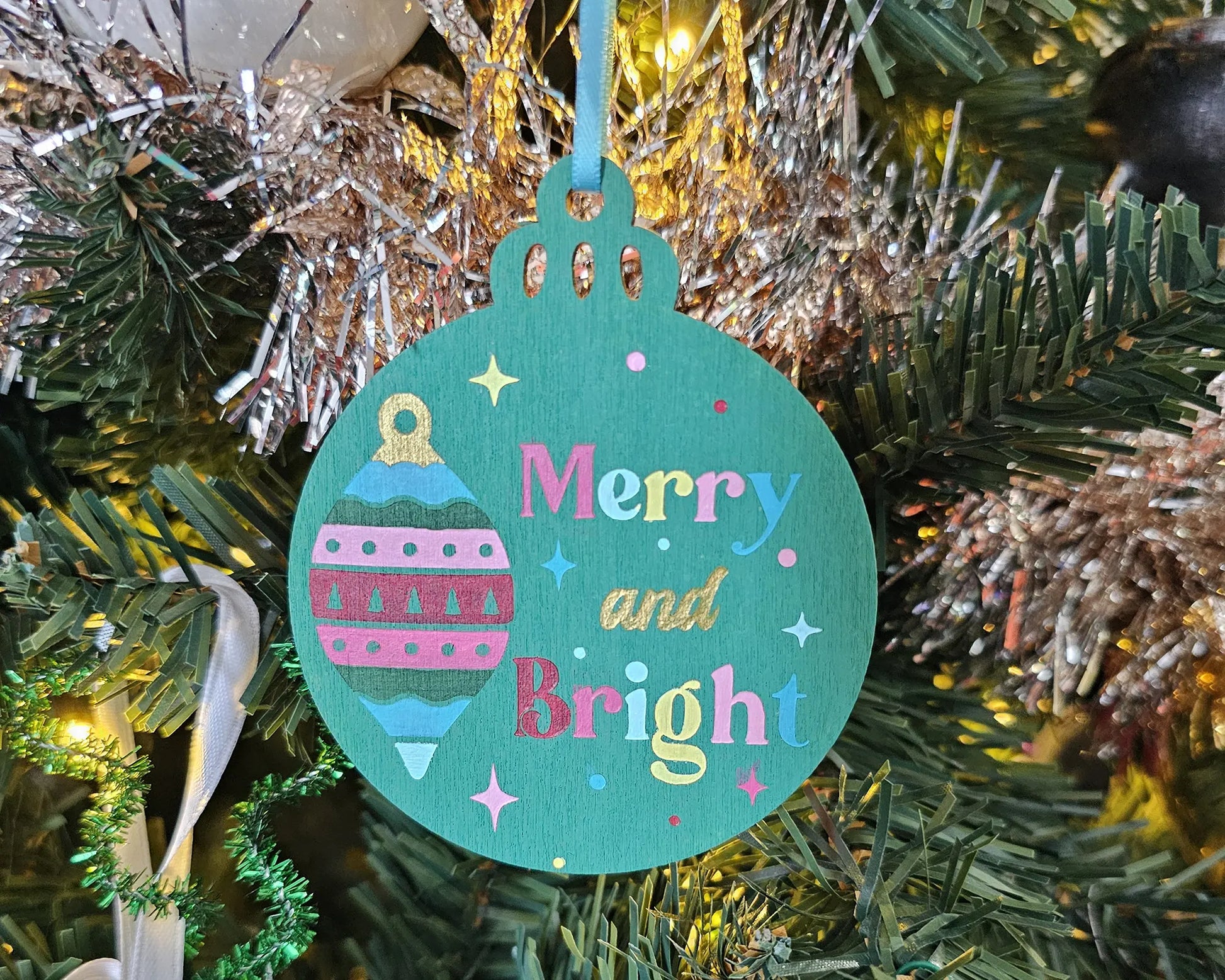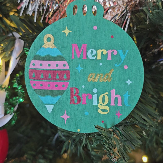 Holiday Merry and Bright Handpainted Wooden Christmas Ornament