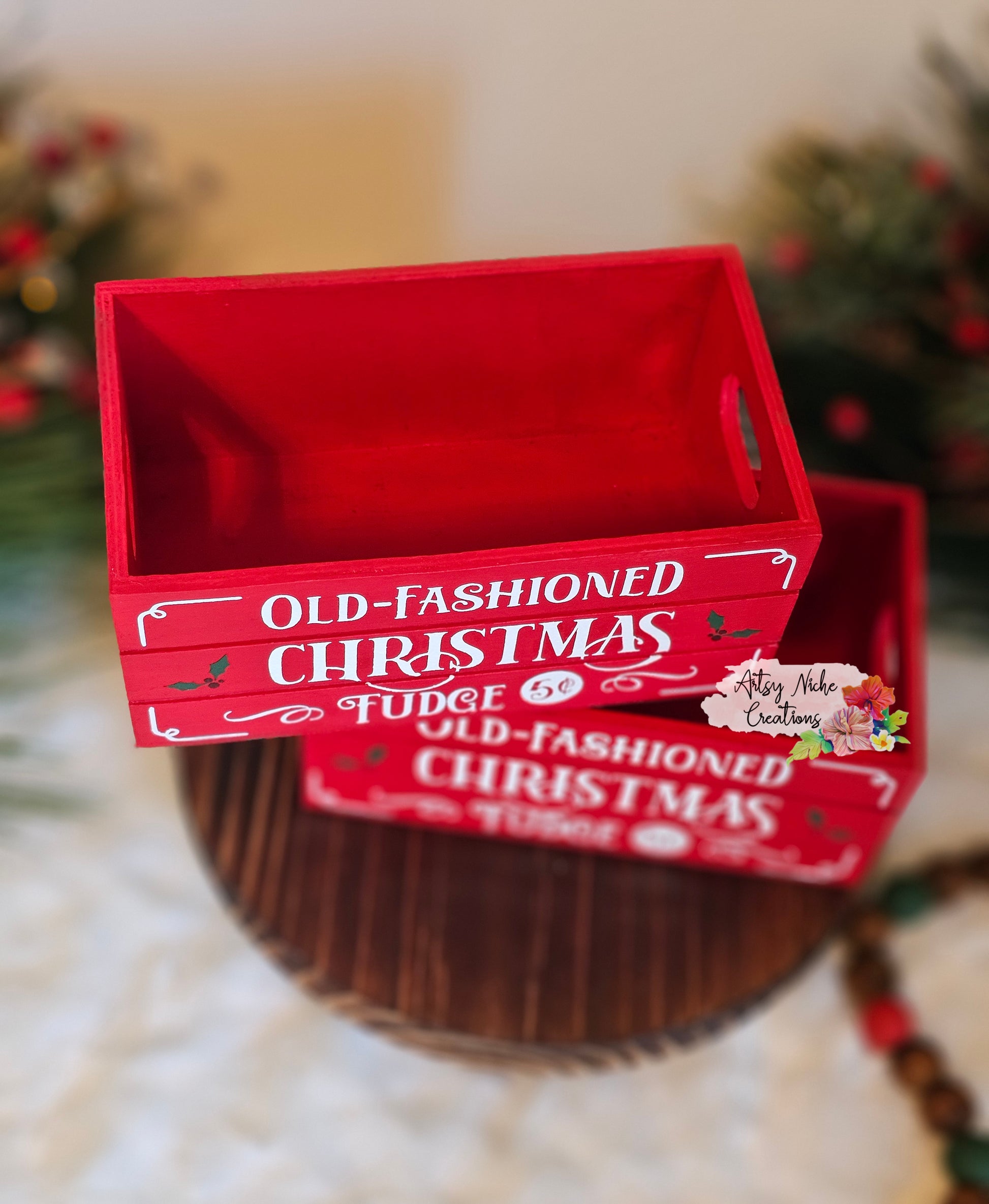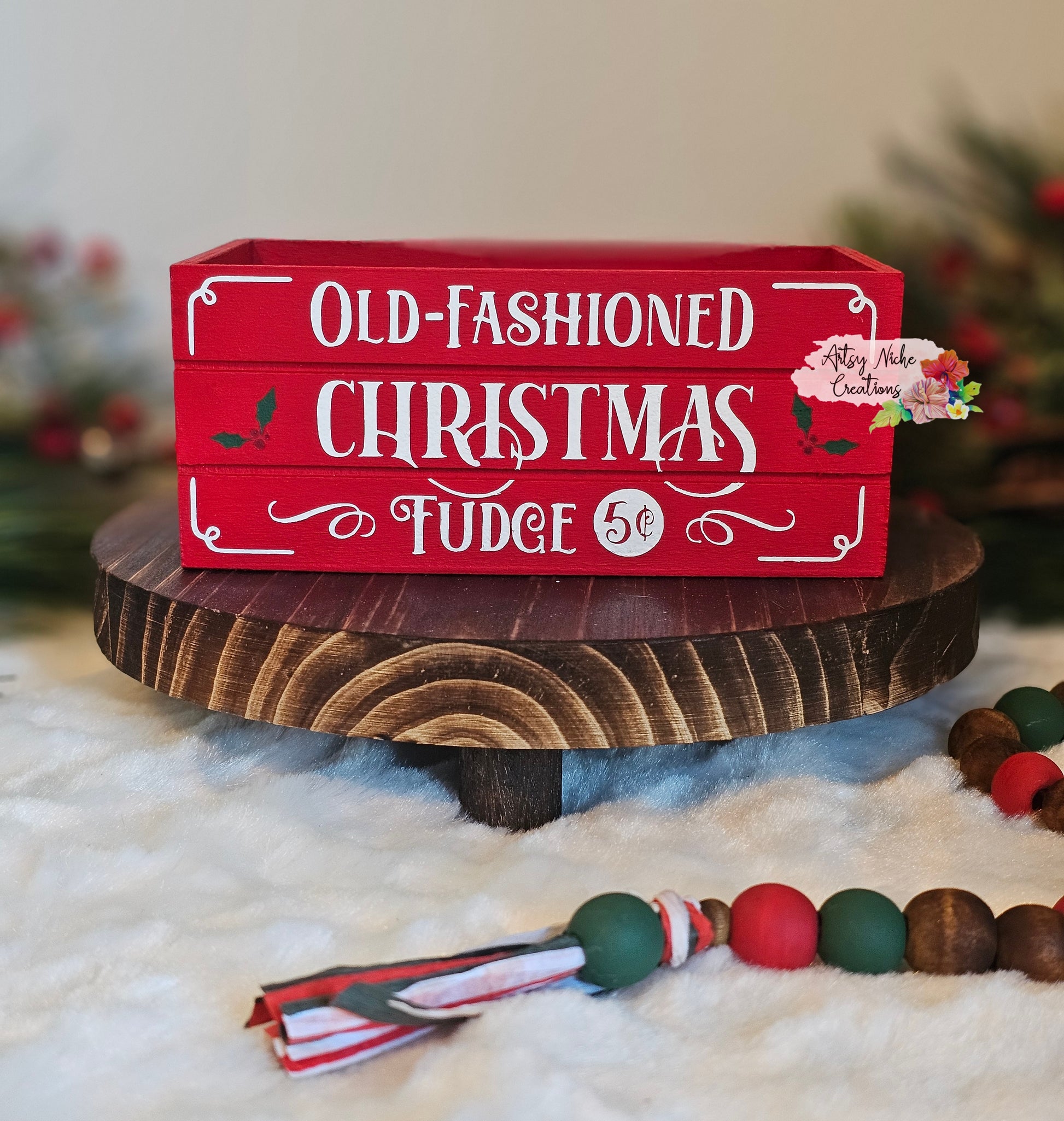 Old Fashioned Christmas Fudge Holiday Wood Mini Crate