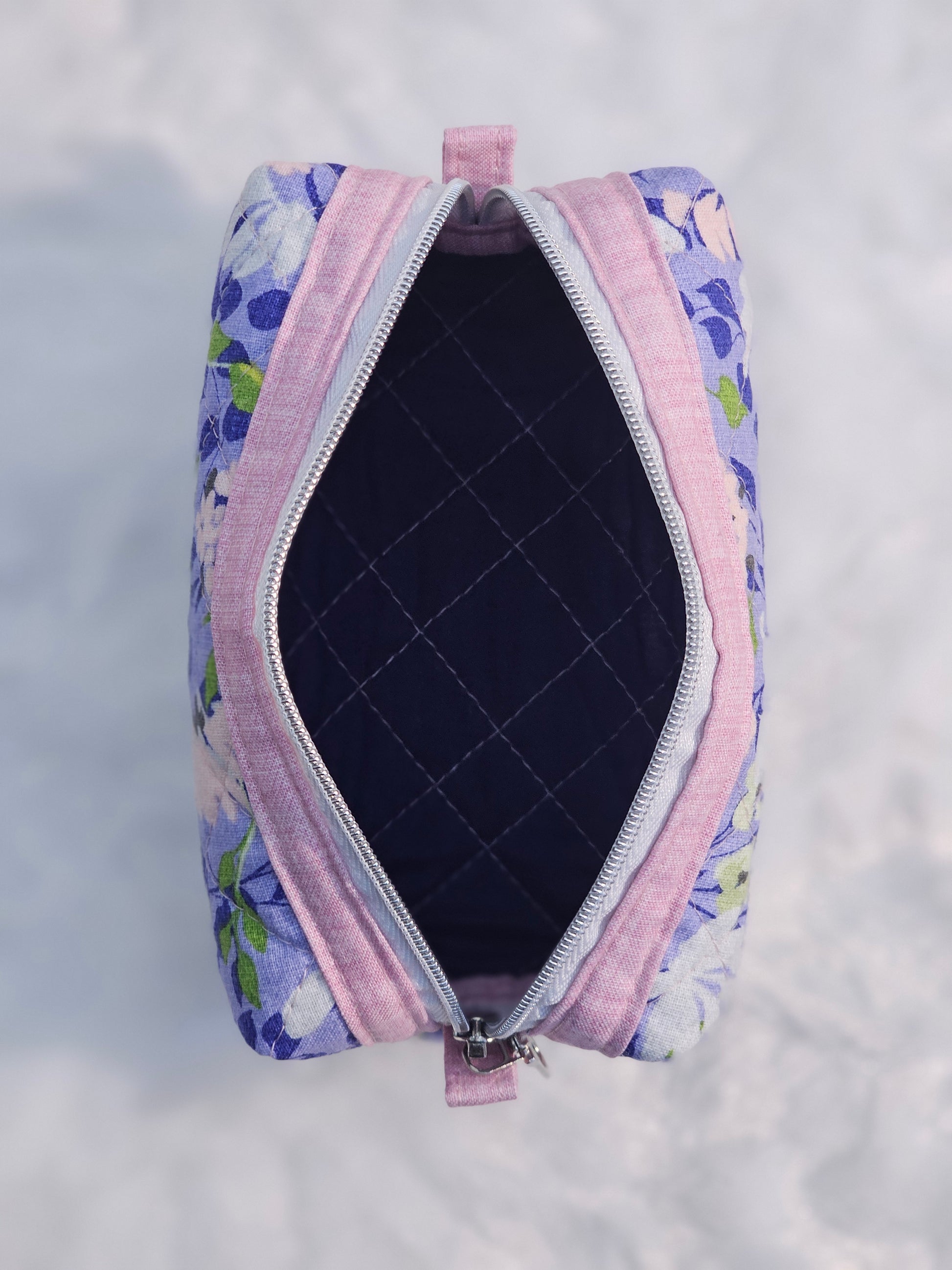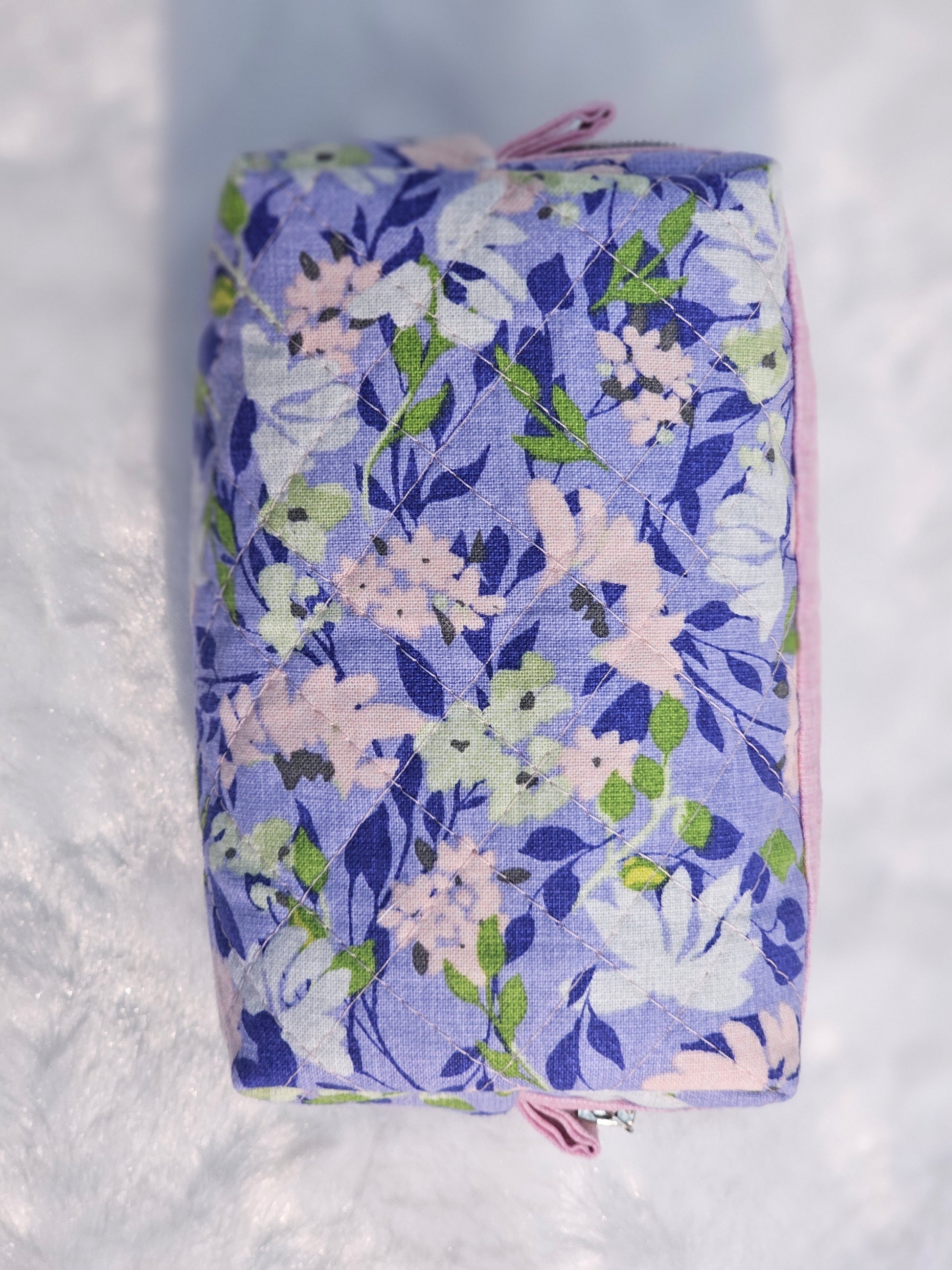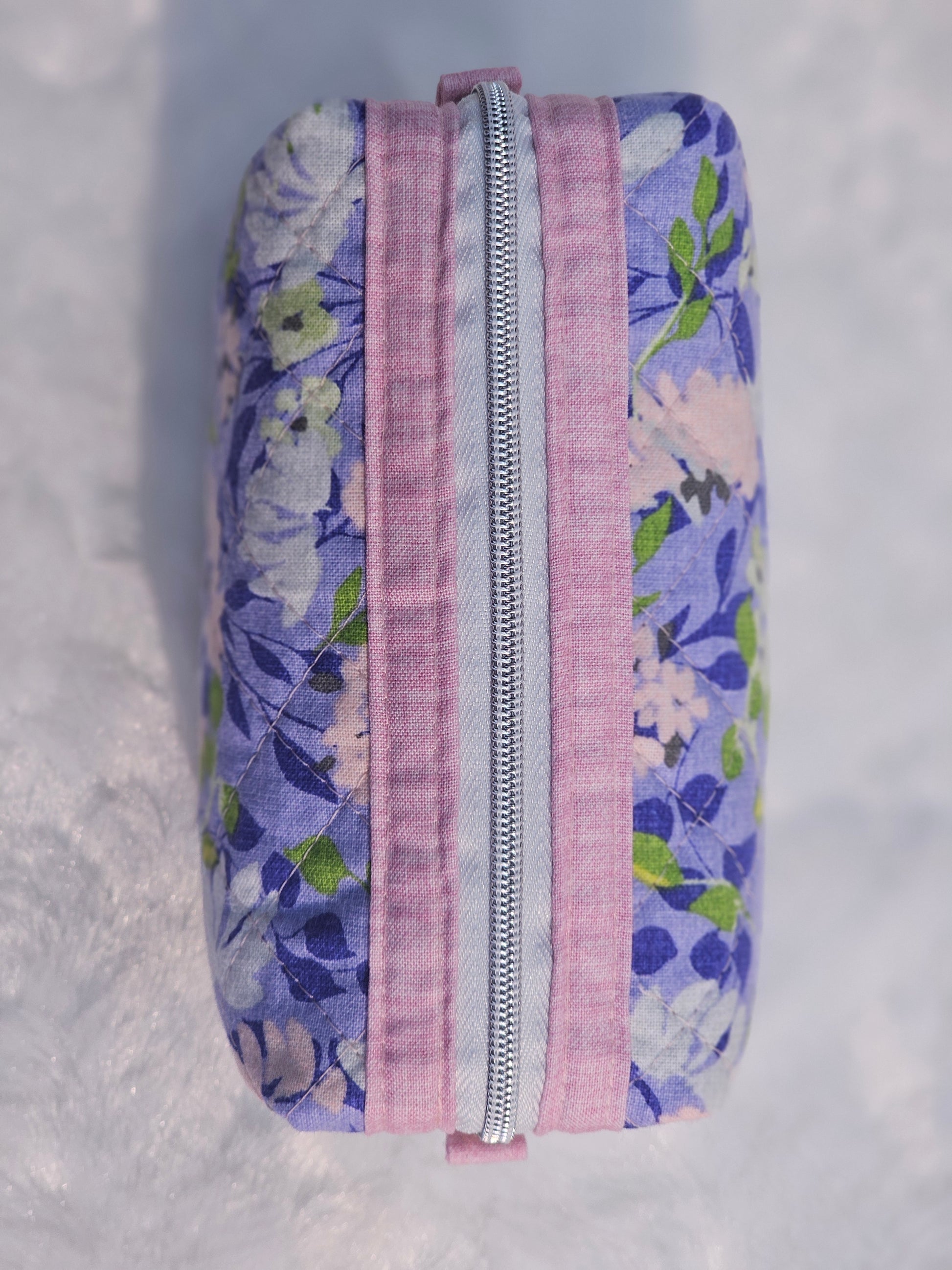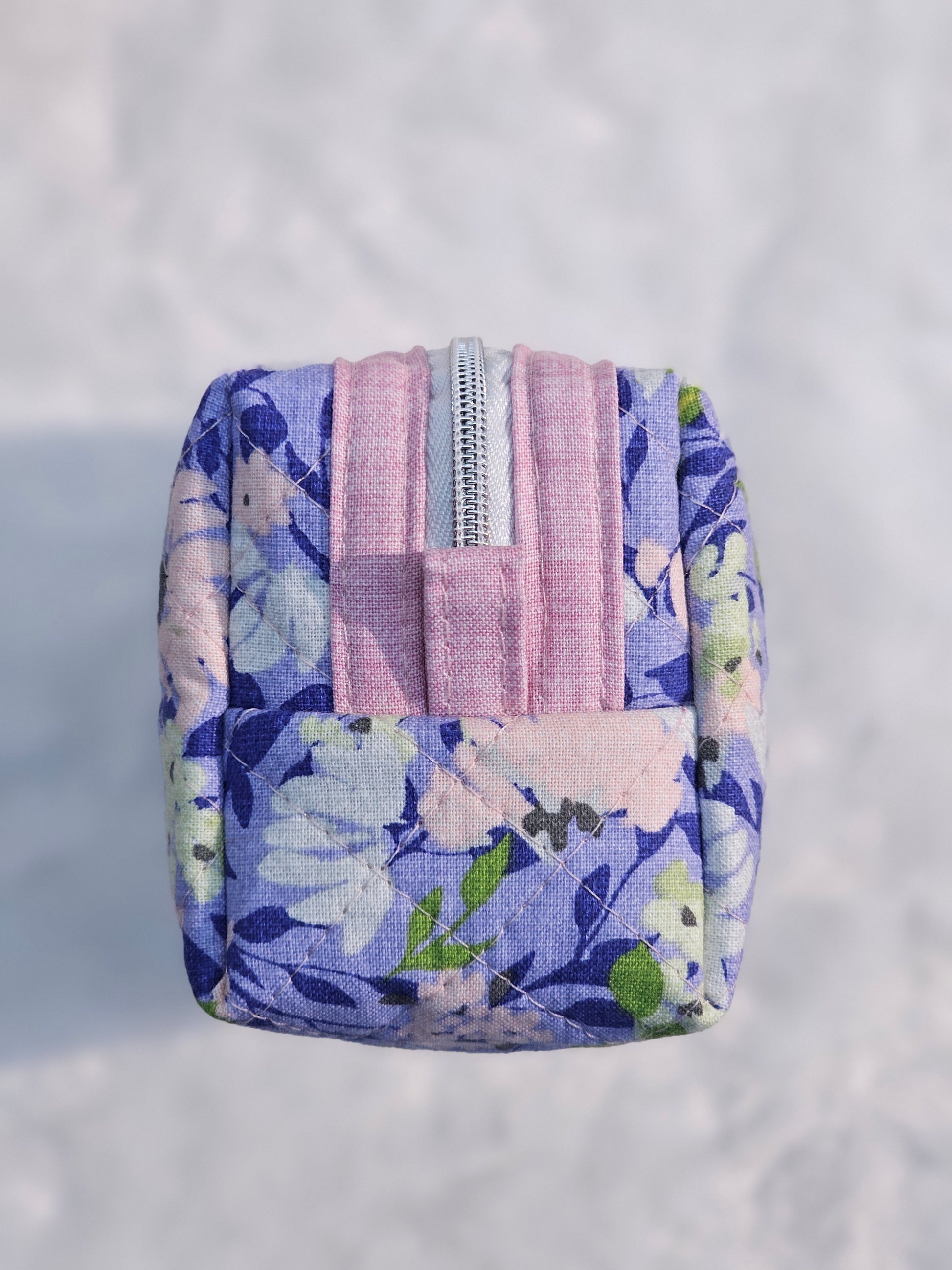 Pastel Purple Floral Light Pink Accented Quilted Pattern Mini Zipper Box Pouch