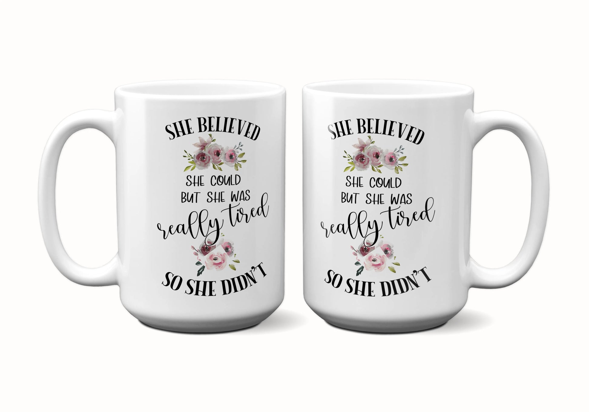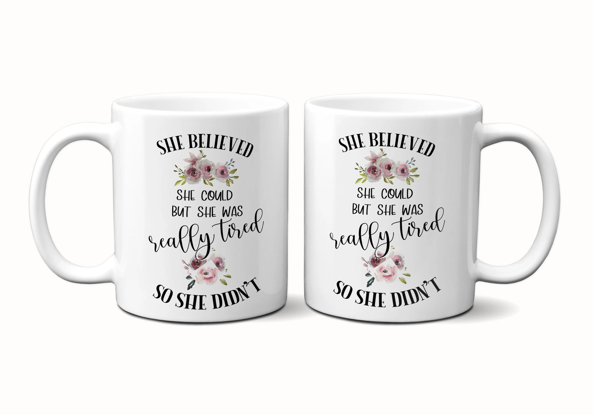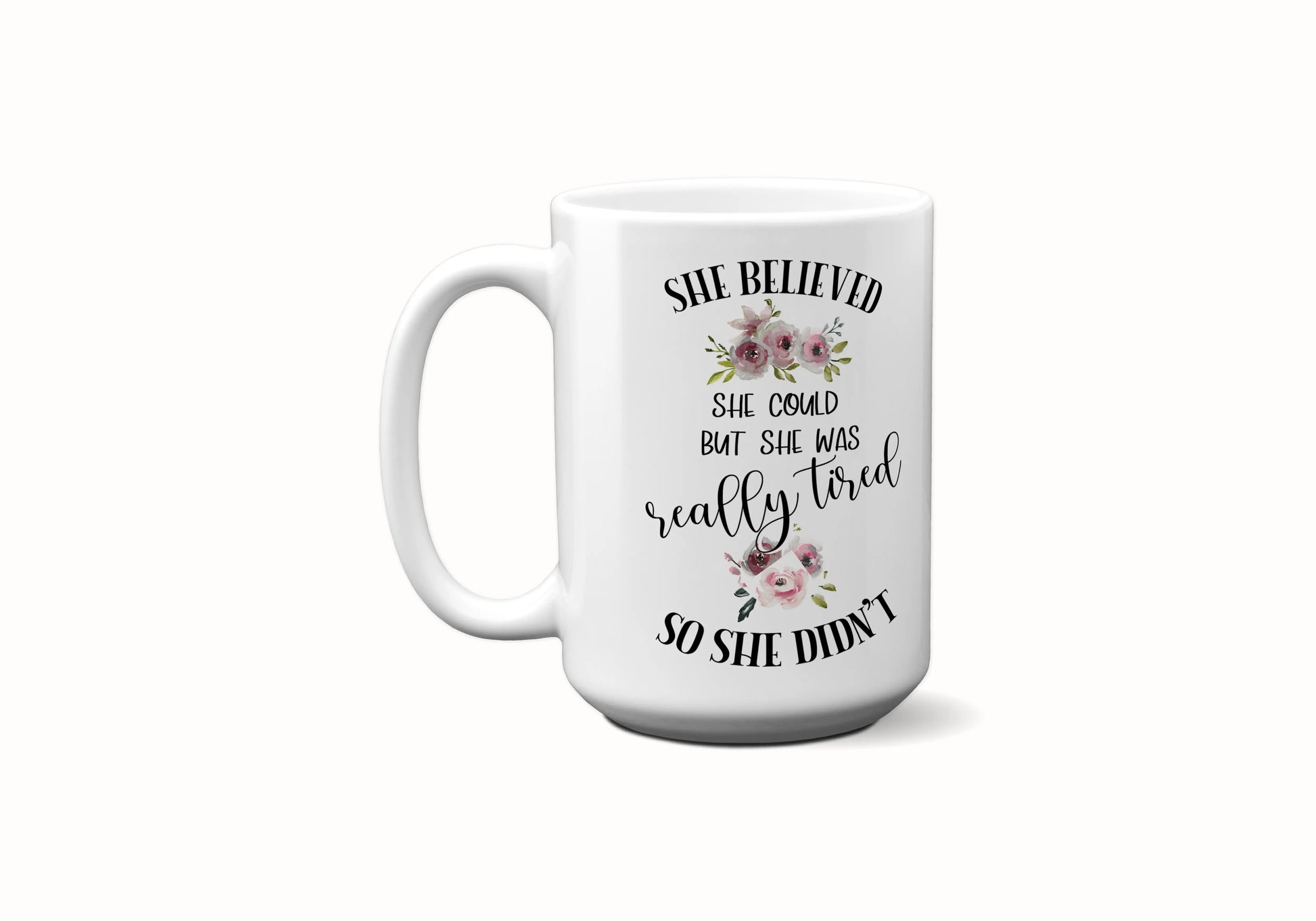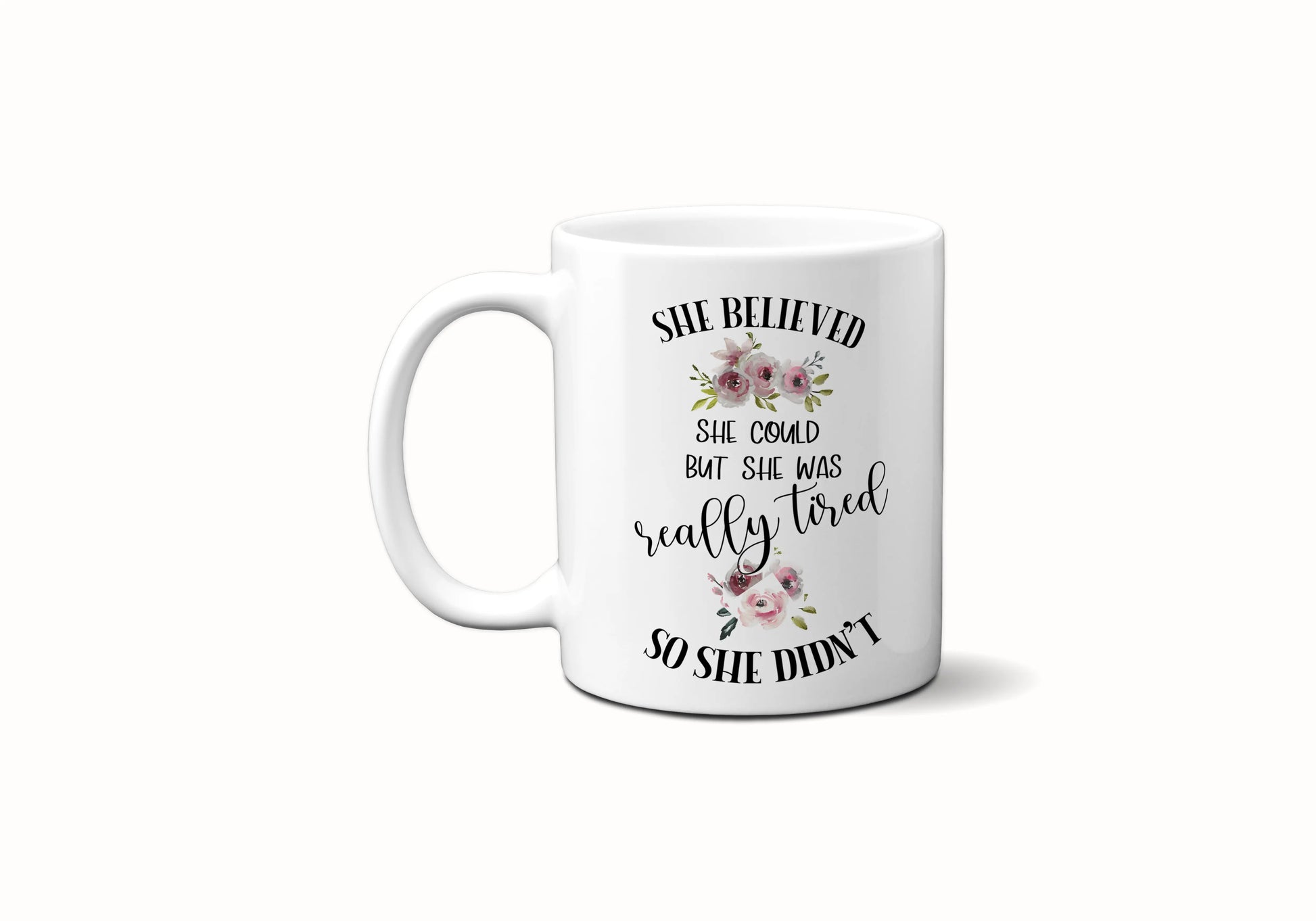 This ceramic coffee mug is the perfect inspirational gift for any occasion. Its message reads: "She Believed She Could But She Was Really Tired So She Didn't," a reminder to nurture your wellness, knowing that sometimes you need to give yourself a break.