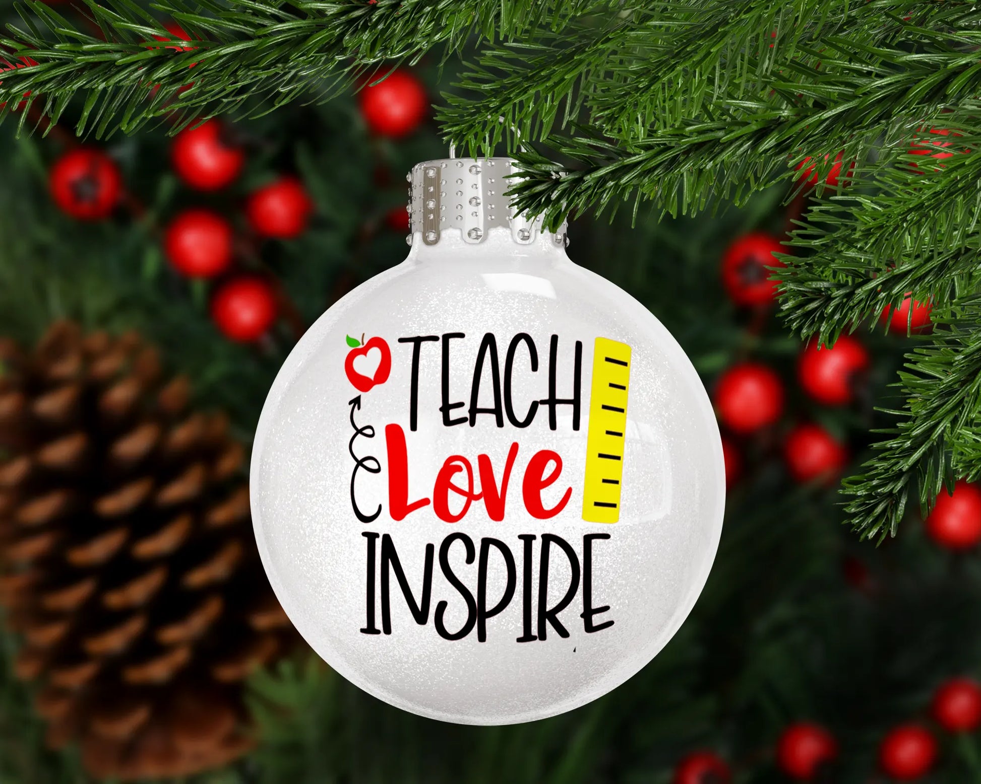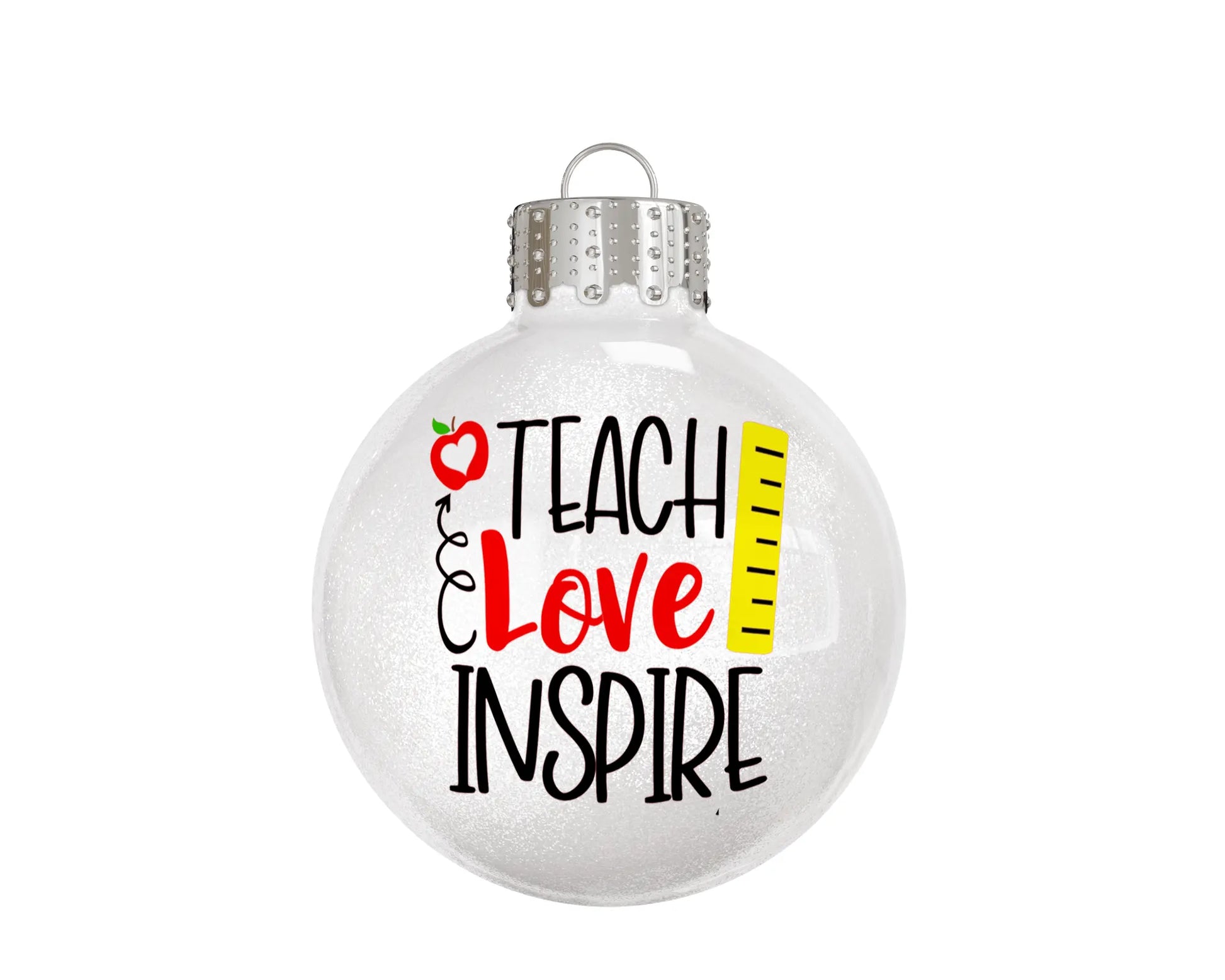 Teach Love Inspire Apple And Ruler Glass Ball Christmas Ornament