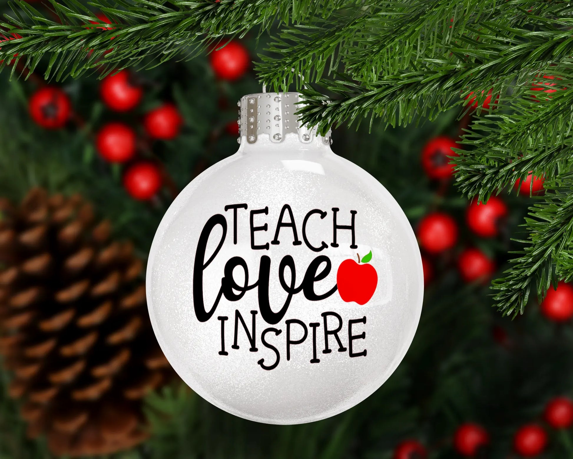Teach Love Inspire Apple Glass Ball Christmas Ornament