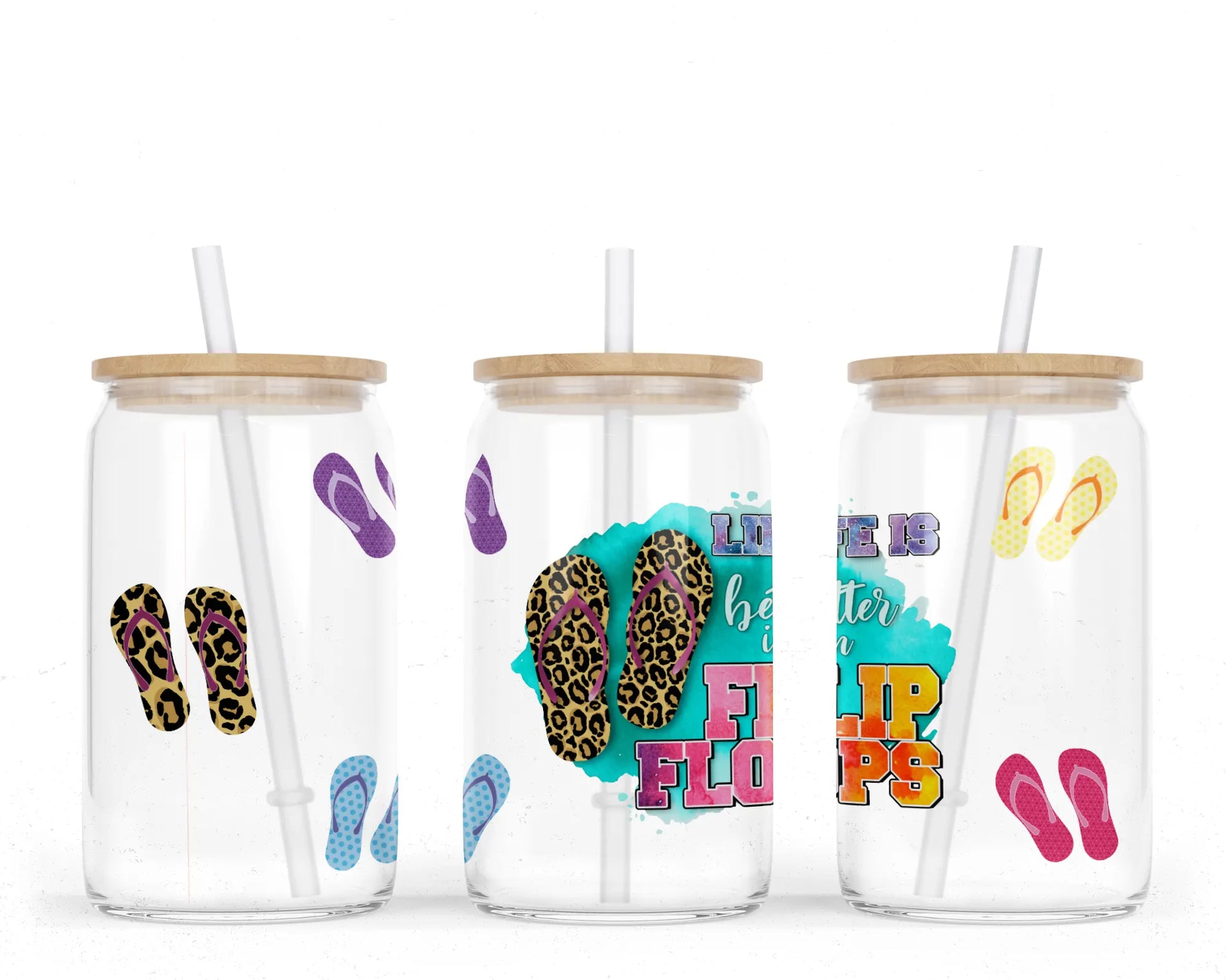 16 oz Sublimation Clear Glass Can Life Is Better In Flip Flops
