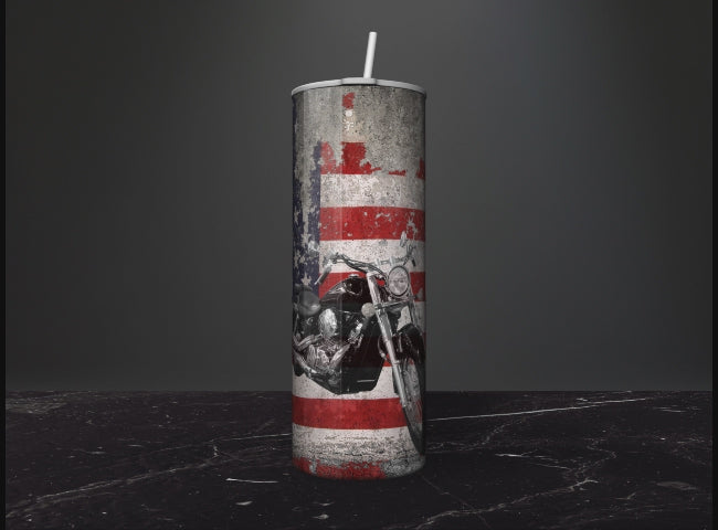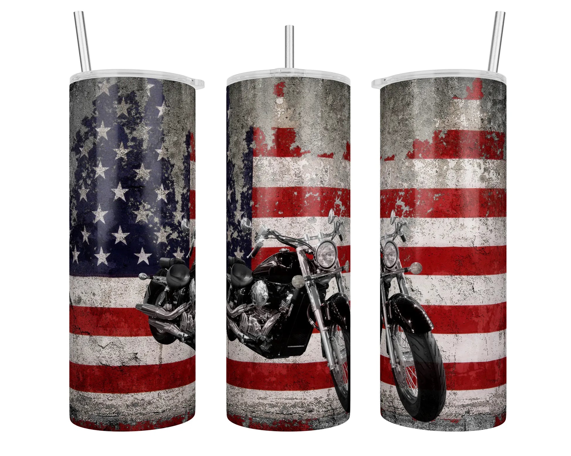 20 oz Distressed American Flag Motorcycle Sublimation Tumbler