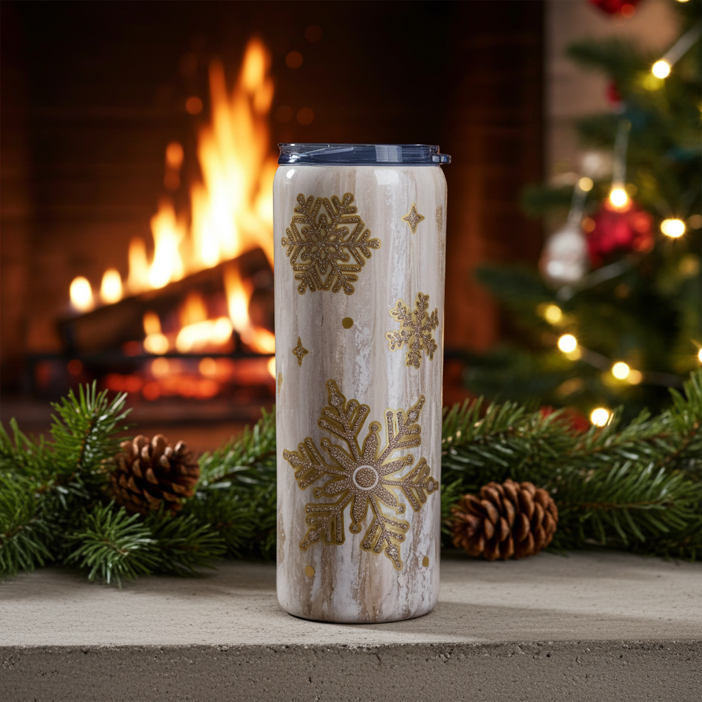 20 oz Gold Dirty Pour Peekaboo Snowflake Epoxy Tumbler