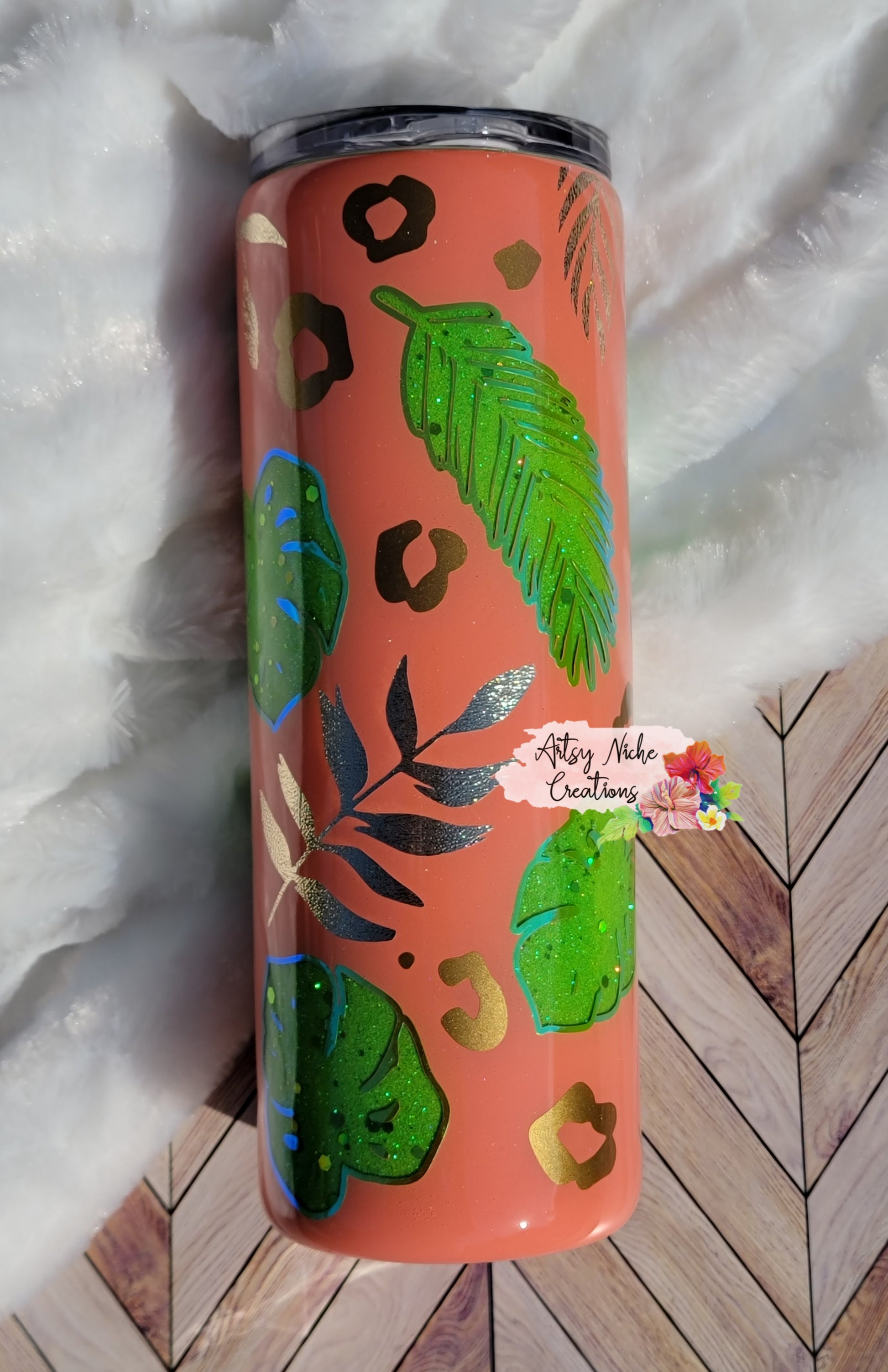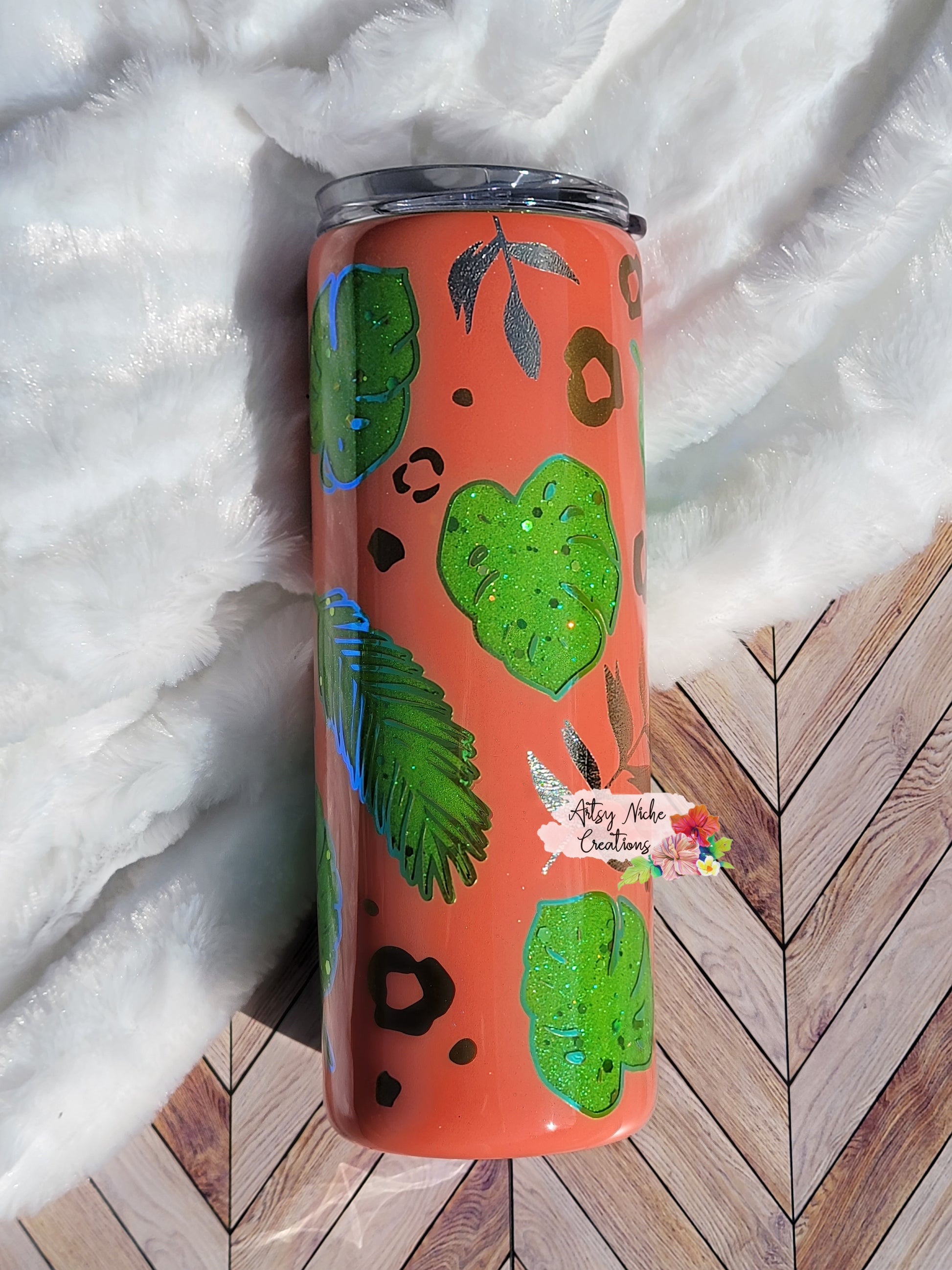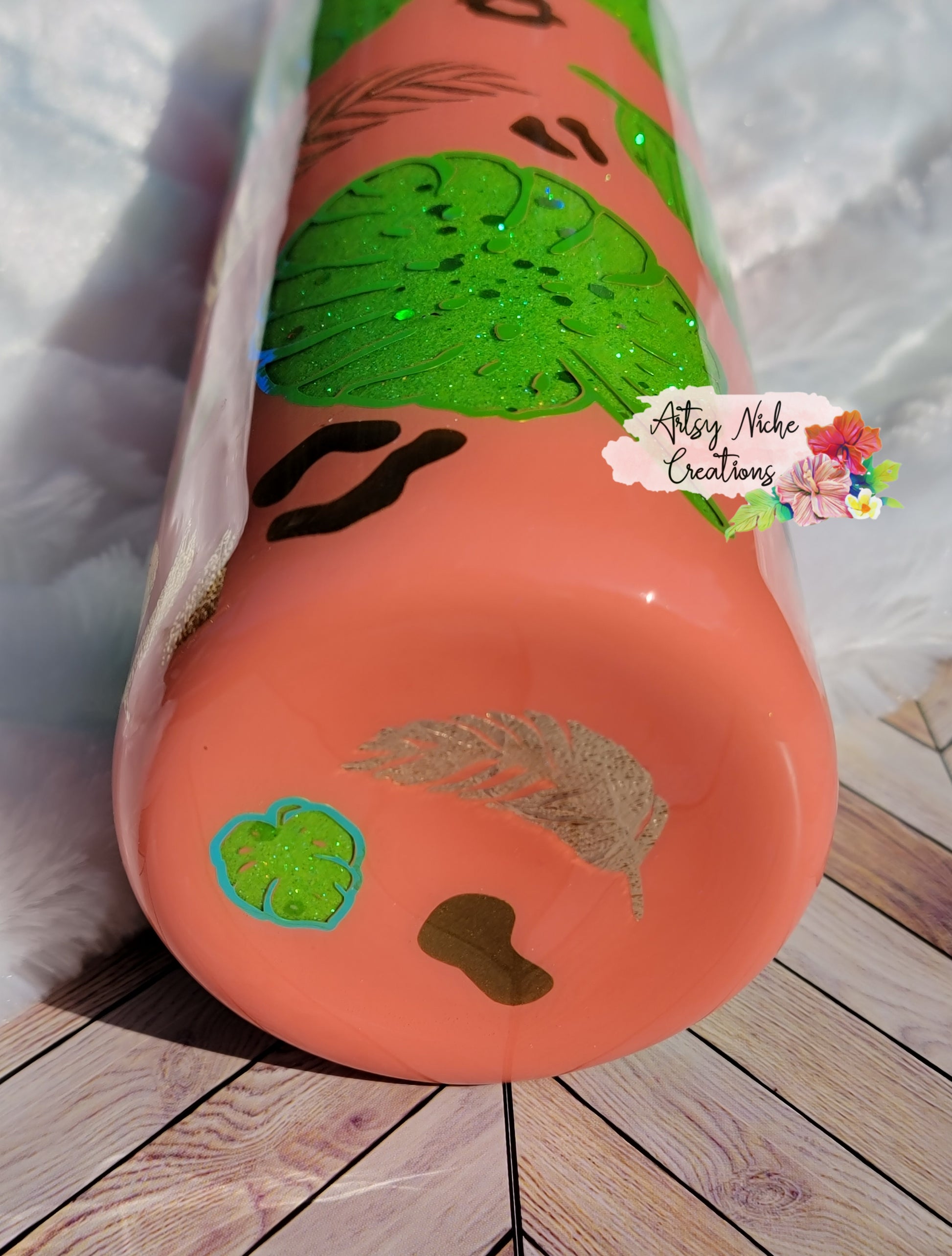 20 oz Skinny Coral Peekaboo Tropical Epoxy Tumbler