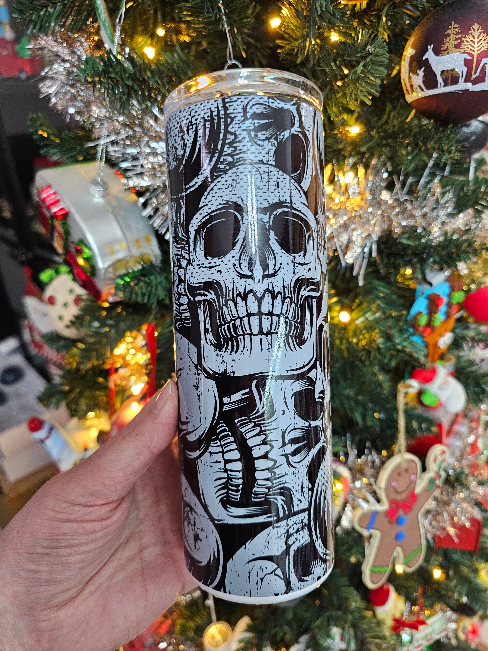 20 oz Skinny Grey Skull Sublimation Tumbler - Imperfect