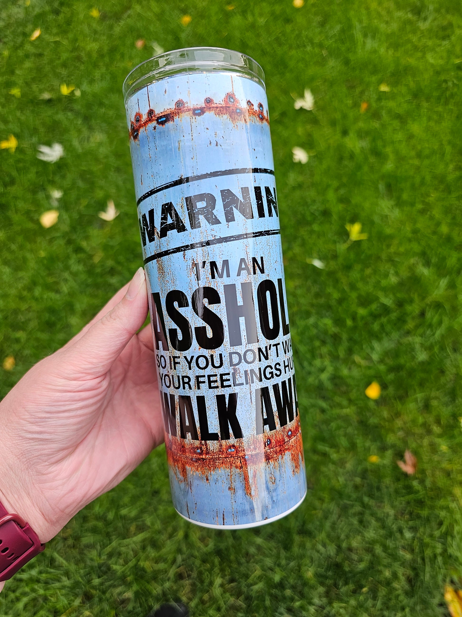 20 oz Warning Asshole Walk Away Sublimation Tumbler - Imperfect