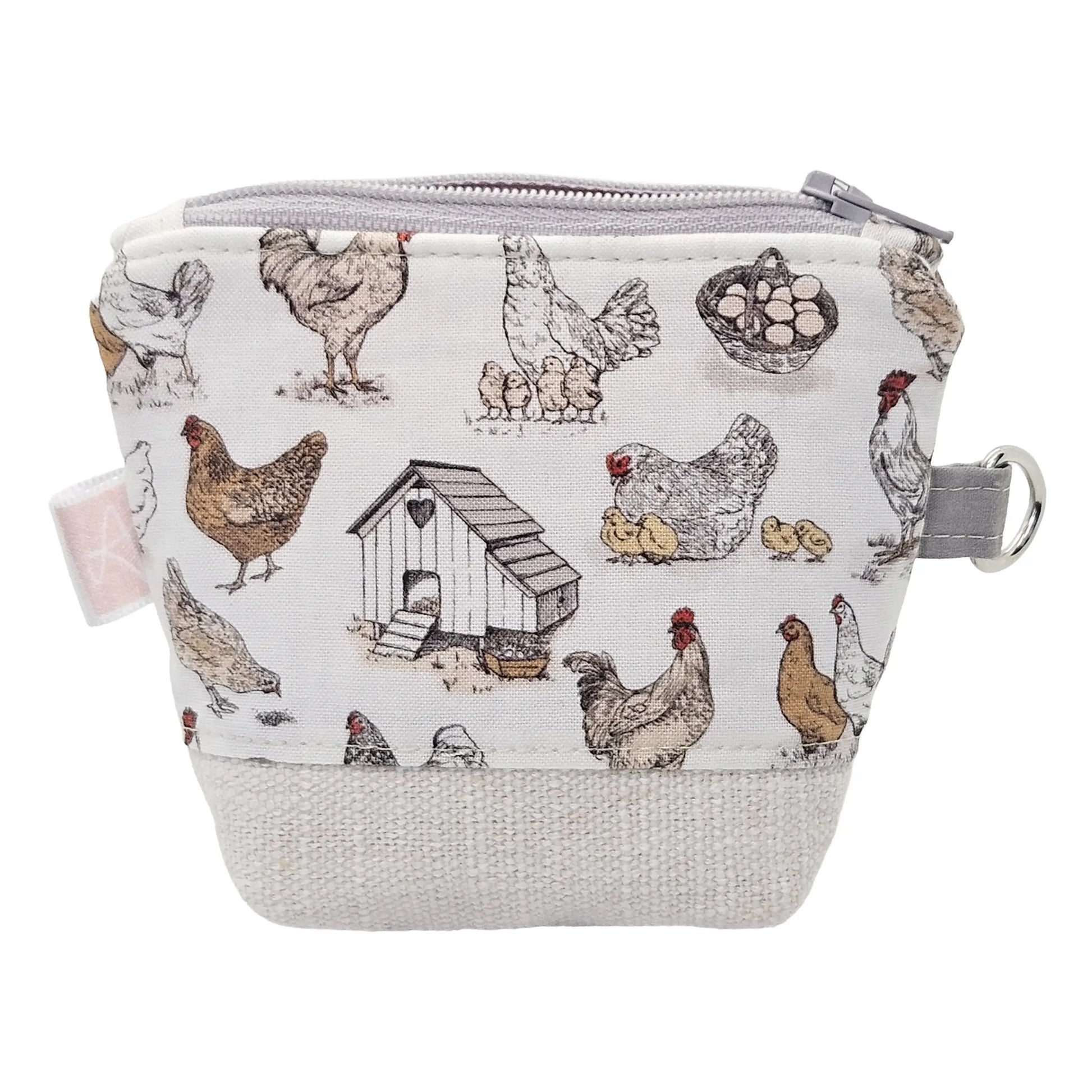Chicken Poultry Coup Handmade Mini D-Ring Zipper Pouch