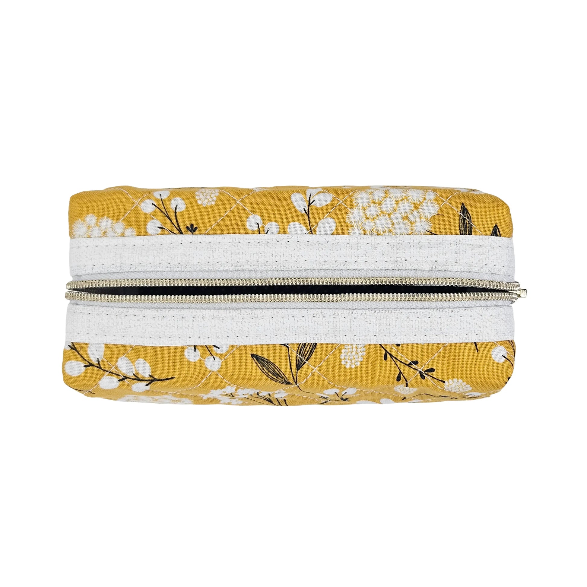 Mustard Yellow Floral Pattern Handmade Mini Quilted Zipper Box Pouch