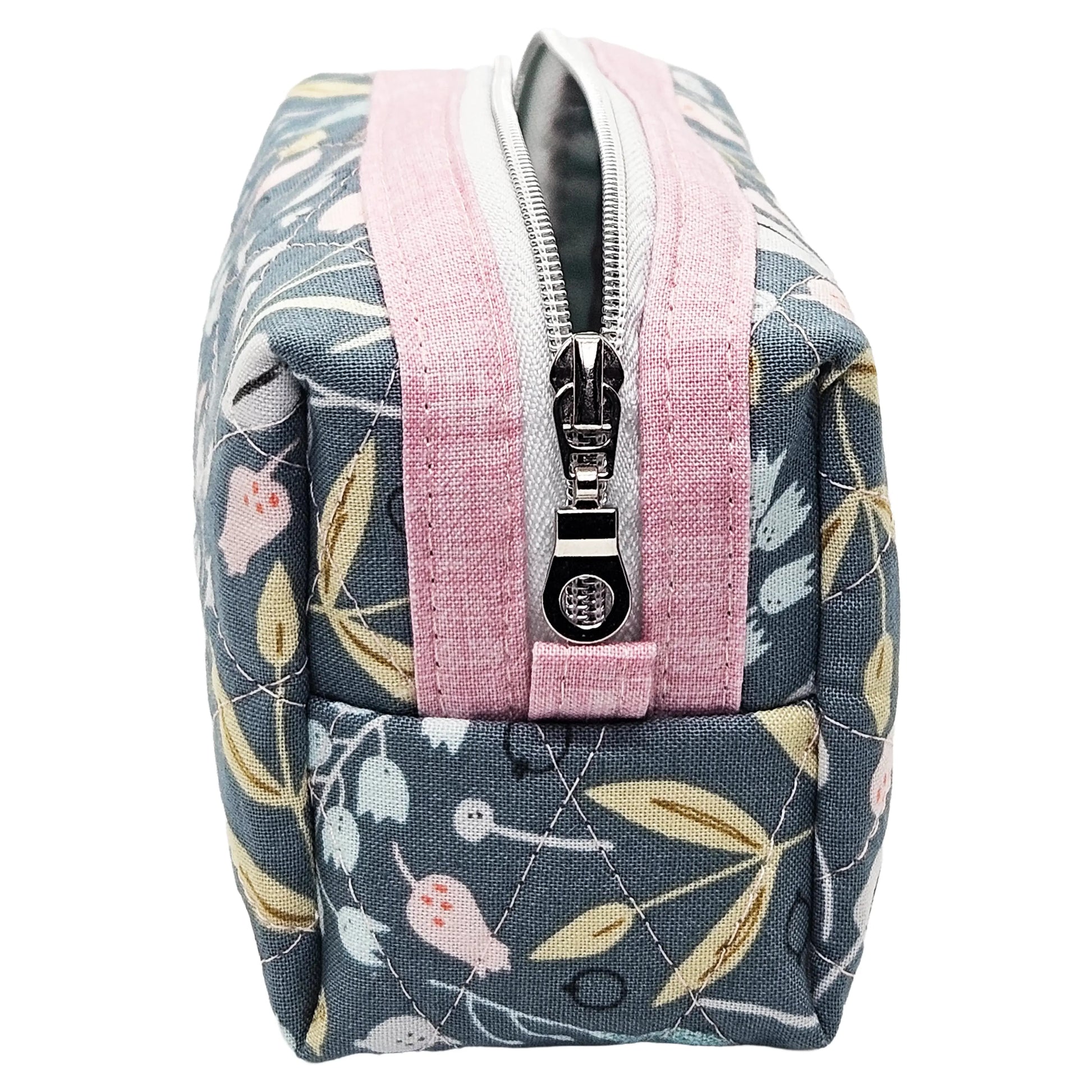 Keep your essentials within reach using this meticulously constructed mini zipper pouch, showcasing an elegant teal and floral pattern with delicate pink highlights. The quilted construction delivers both durability and visual appeal, while the secure closure ensures your cosmetics and small items remain safely contained. Handcrafted with precision, this compact organizer merges sophisticated design with everyday practicality, offering a refined storage solution that elevates your personal care routine.