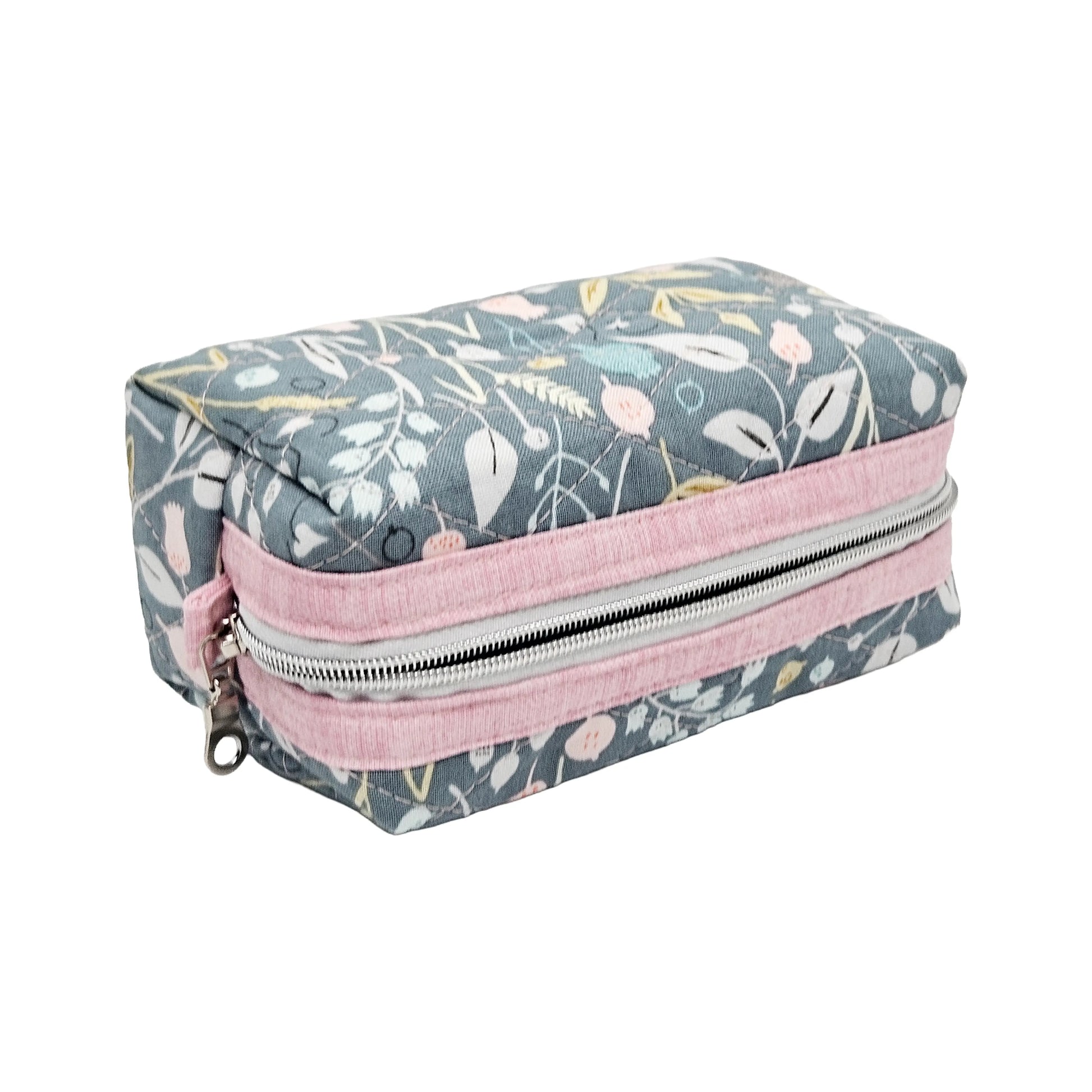 Teal Floral Pink Accented Quilted Pattern Mini Zipper Box Pouch